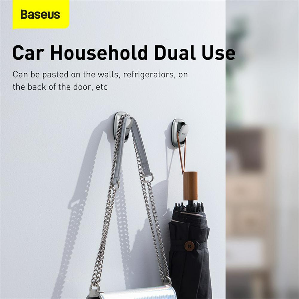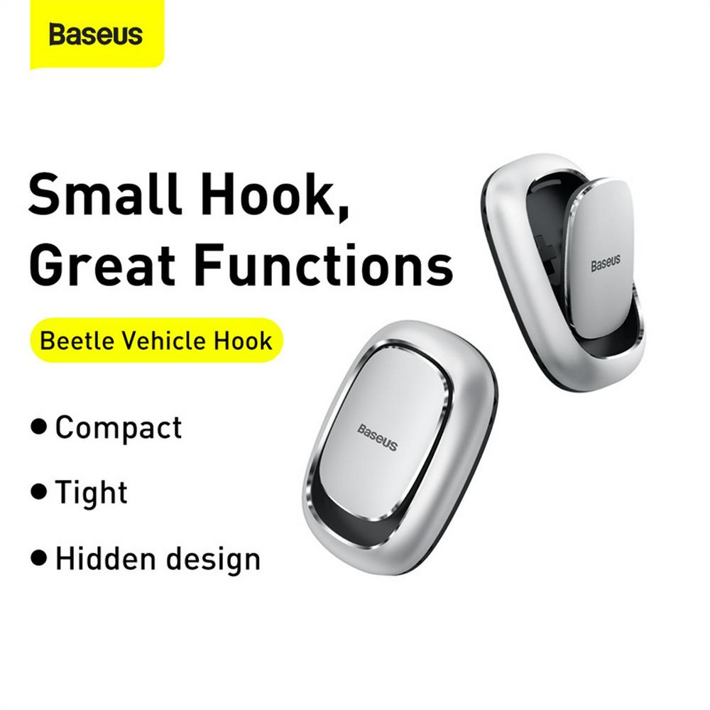 2pcs Baseus Beetle Car Hook Mini Small Glue Stickers Center Console Door Multi-function Creative Interior Storage Hook-Silver