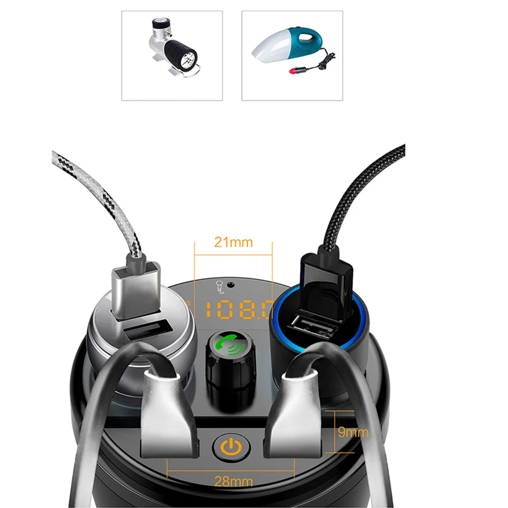 3 in 1 Bluetooth FM Transmitter Double USB Ports Car Charger Music Player Supports Hands-free Call