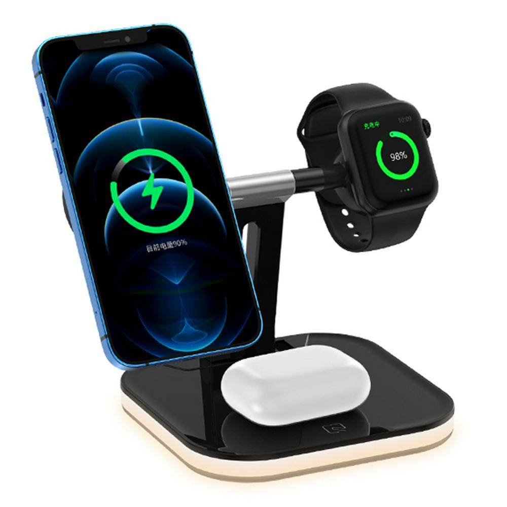 QC3.0 Adapter, 1 x Manual. We take responsibility for our products. Click on the “Add to cart” button now and get this cool accessories for your iphone products. 【15W Fast Wireless Charging Station】The wireless charger car mount designed with Overcurrent/Overheat/Over-Voltage Protection, Short Circuit Safeguards. It can intelligently identify wireless fast charging device and smartly adjust power among 5W, 7.5W, 10W, 15W. 【Be your Night light】There is a light under the charging base, and the light will automatically turn on when charging (it can also turn on without charging). Of course, you can turn off or self-adjust it if you don't need it. There are two gears to choose from.This feature can help you see more clearly at night or act as your bedside lamp. 【Strong Magnet】Custom designed for iPhone 12/12 Mini/ 12 Pro/12 Pro Max. Built-in strong magnets and anti-slip silicone produce stable hold for mobile phone. It supports mobile phone vertical or horizontal charging for better viewing of video. At the same time, the closed magnetic field would not affect the phone signal. NOTE:Qi-Enabled Phones can use the magnet case, but the charging effect is not guaranteed. 【3-in-1, Save Space】Adopting the wireless technology, this wireless charging station supports to charging your IPhone 12/12 Mini/12 Pro/12 Pro Max, iWatch Series 6/5/4/3/2/1, AirPods Pro/2 simultaneously. Hide the redundant cables, and make your desk or nightstand neatly and orginazed. NOTE: NOT support other smart watch.