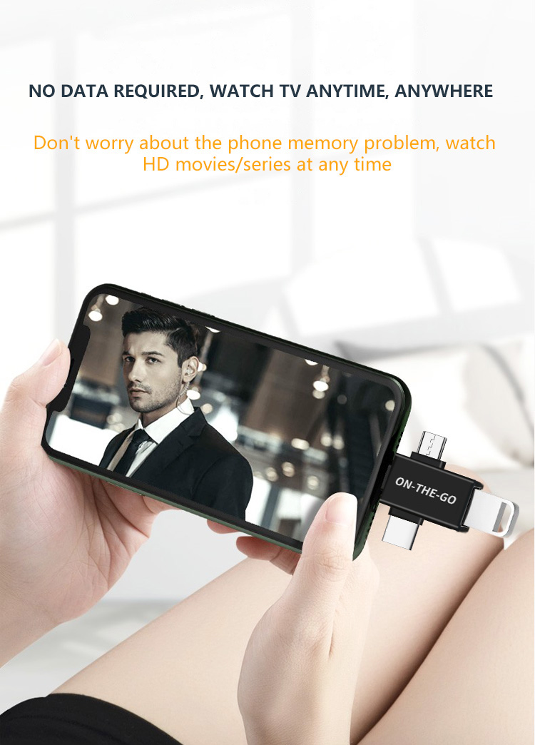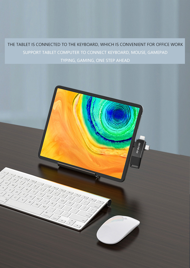 2. Connect one end to a mobile phone/tablet, and the other end to a USB flash drive, you can read documents or watch movies on the mobile/tablet directly