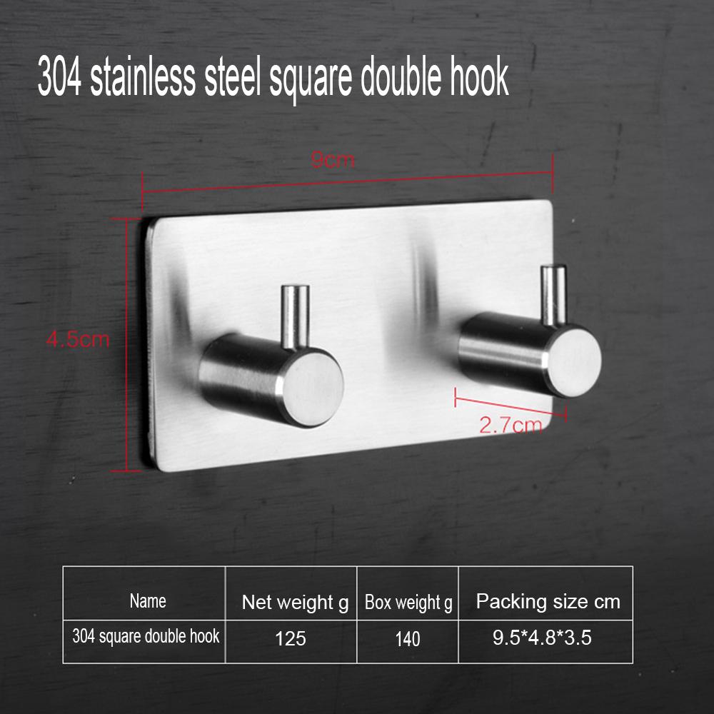 304 Strong Non-marking Adhesive Drill-free Stainless Steel Square Double Hook