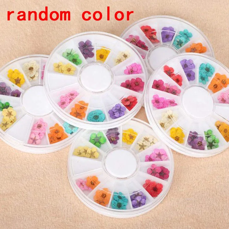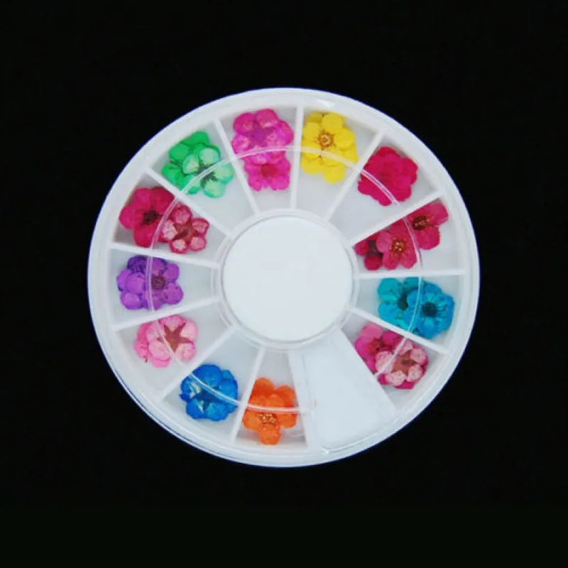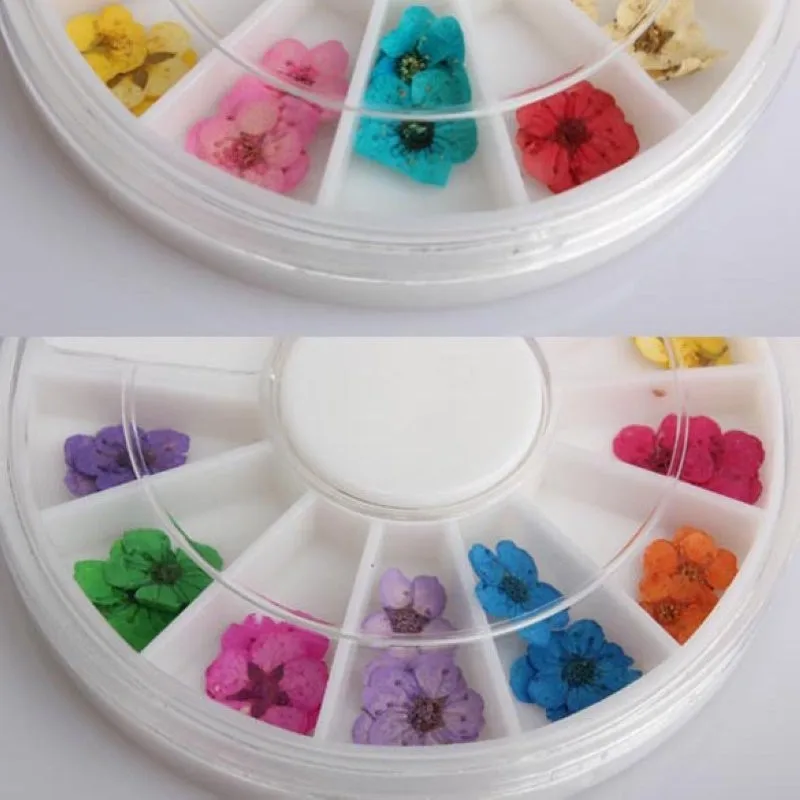 36Pcs 12 Colors Real Nail Dried Flowers Nail Art Decoration DIY Tips with Case Small Flowers Nails Rhinestones Manicure Tools