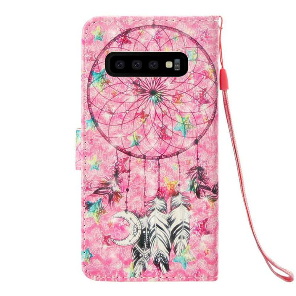3D Colored Painting Owl Pattern PU Leather + TPU with Card Slots Wallet Wrist Strap and Stand Cover Case for Samsung Galaxy S10