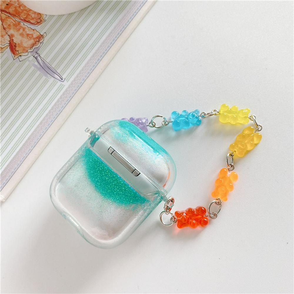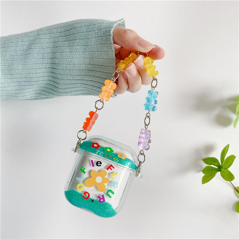 3D Flower Pattern Quicksand with Strap TPU Protective Bluetooth Earphone Charging Case Cover Skin for Apple Airpods 1 / 2