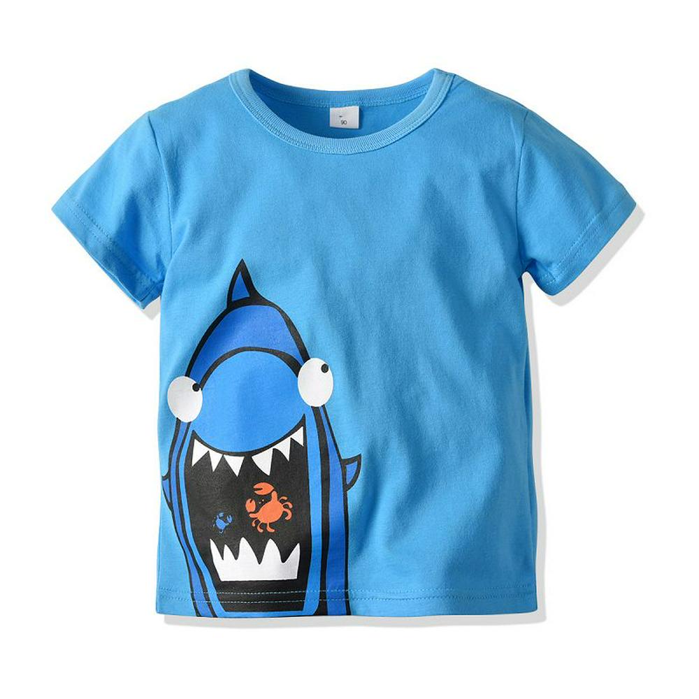 3pcs 90-130cm Summer Occident Stylish Cartoon Children Boys Pure Cotton Short Sleeves O-Neck T-Shirts Tops