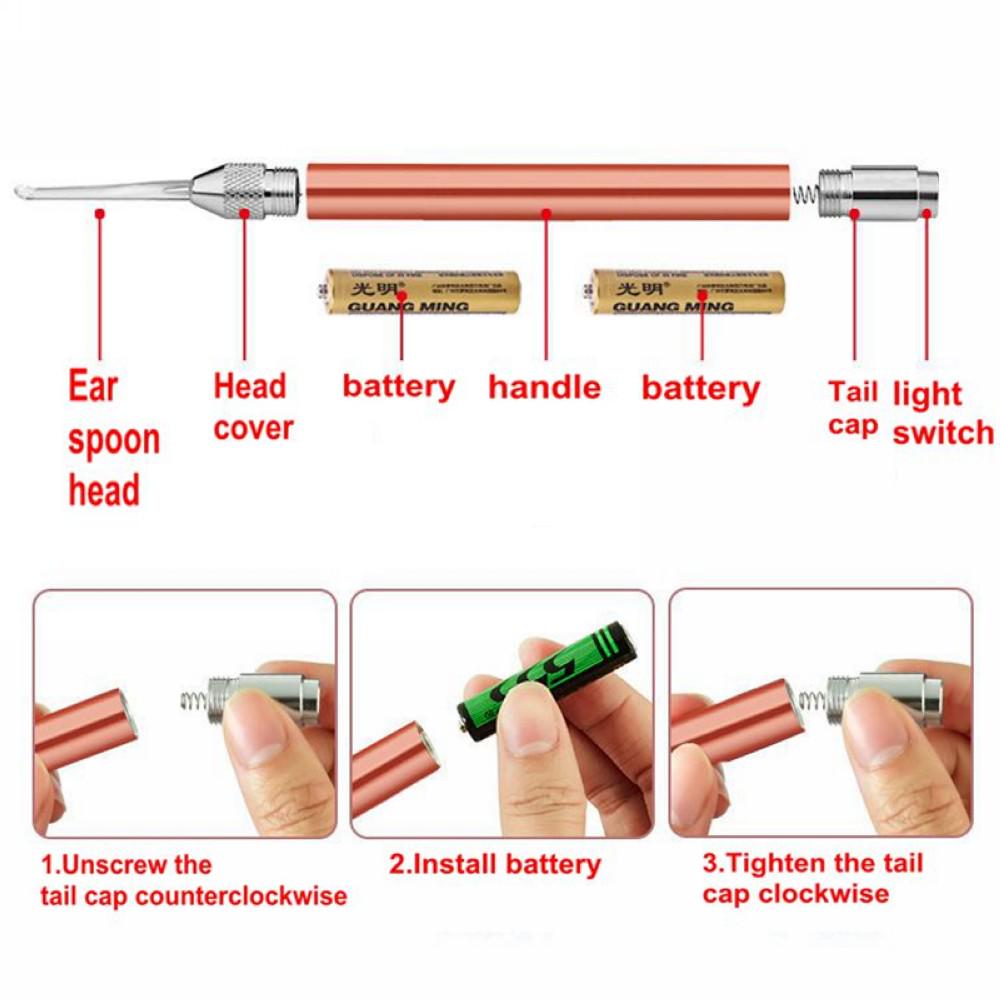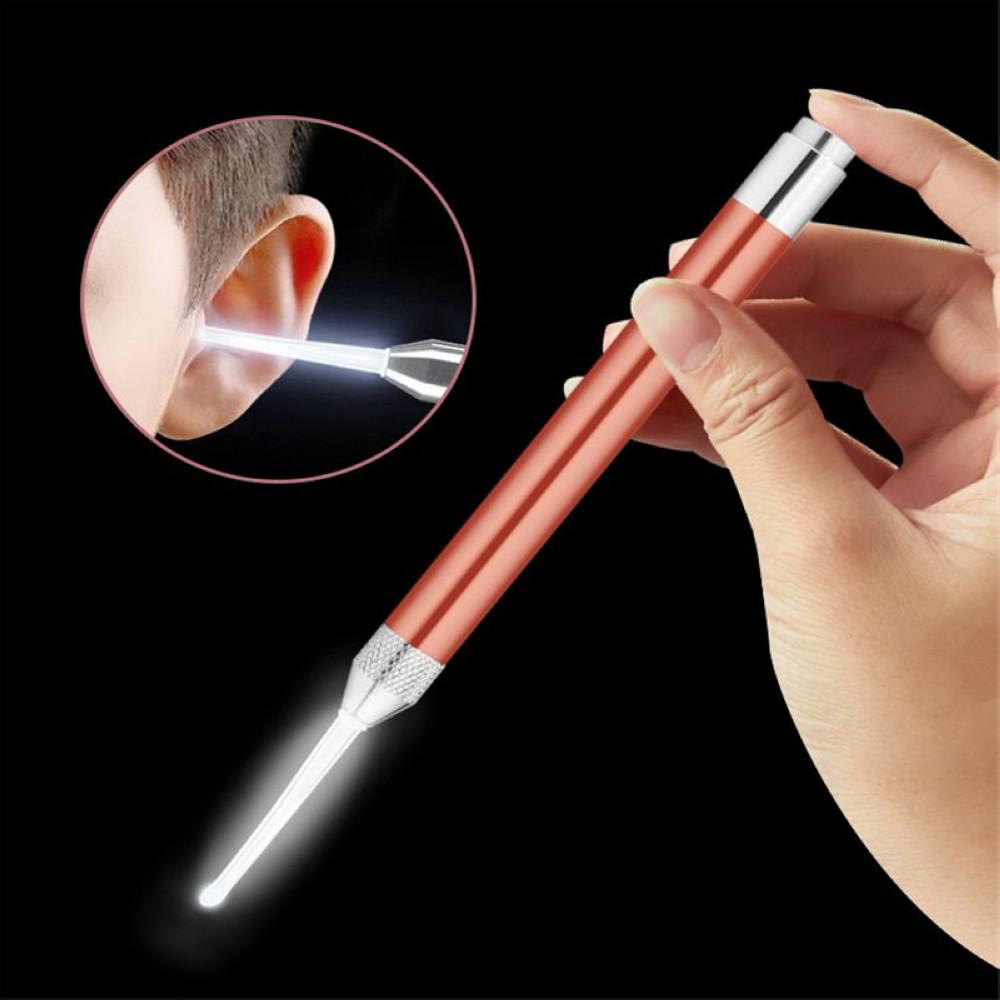 Ear wax remover with LED light. The spoon part illuminates to inspect the inside of an ear.