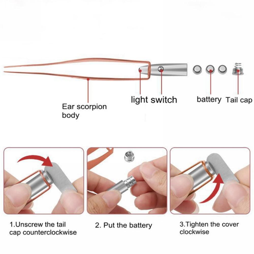 Button on the side for turning on the LED flashlight and flashlight for seeing the ear-hole clearly. (Battery not included)