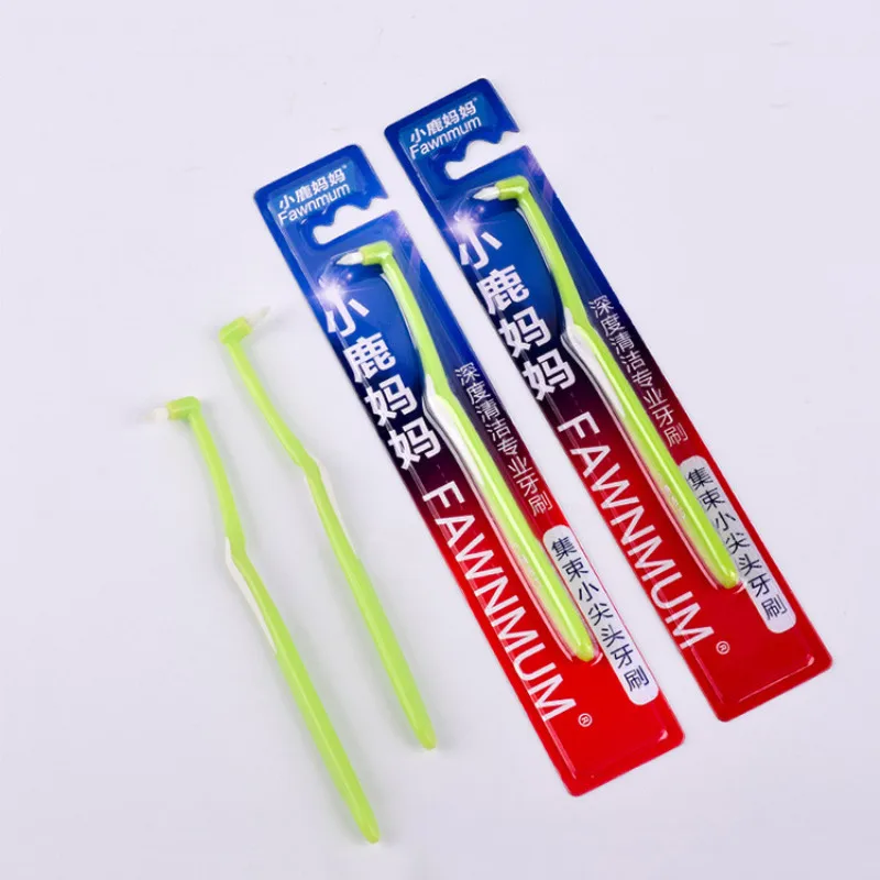 3pcs Pack Little Deer Mum Small Pointed Orthodontic Interdental Brush Soft Hair Correction Single Beam Head Braces Deep Cleaning Toothbrush