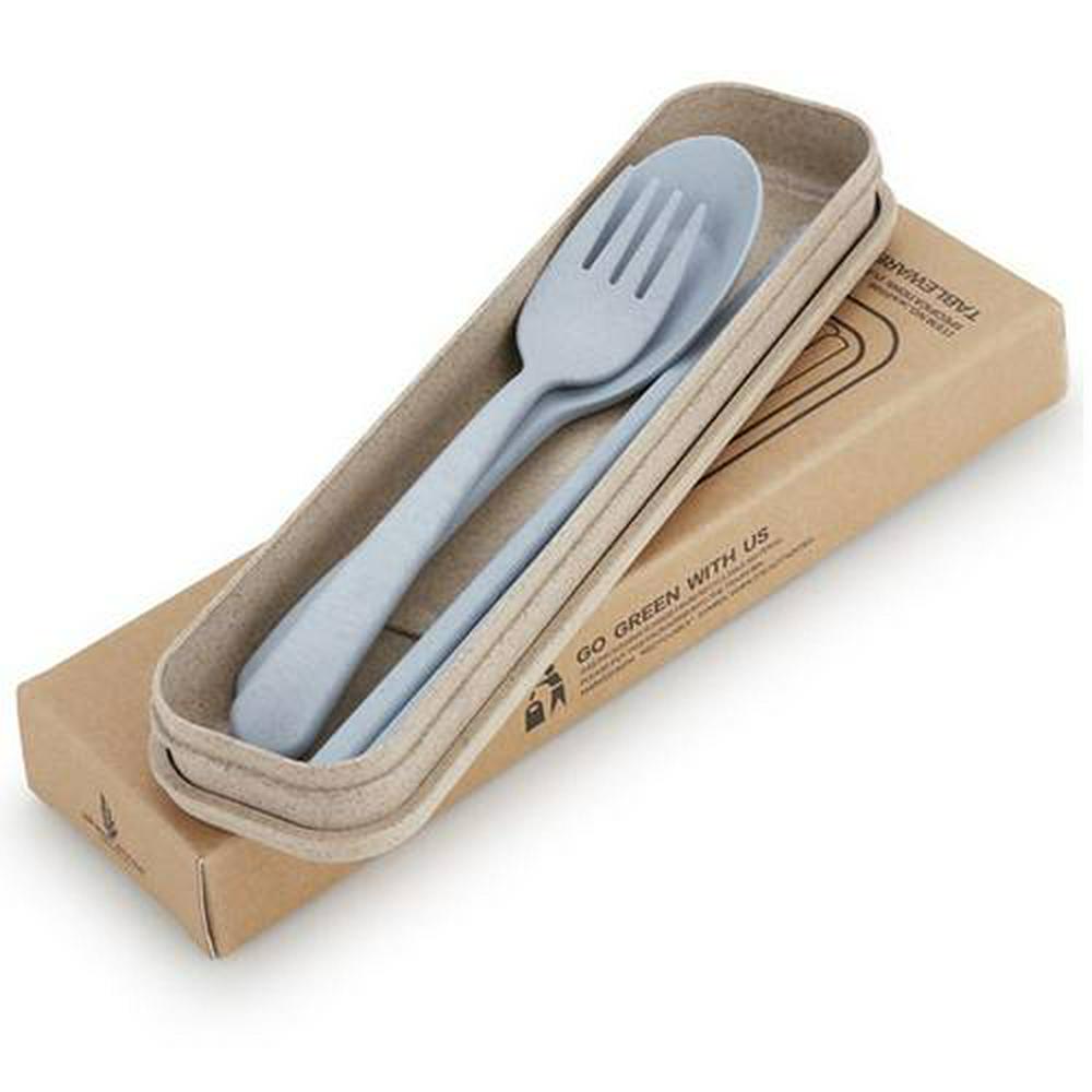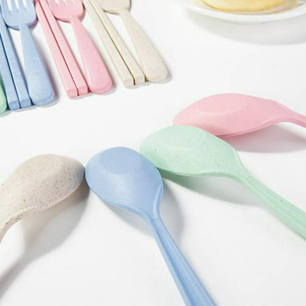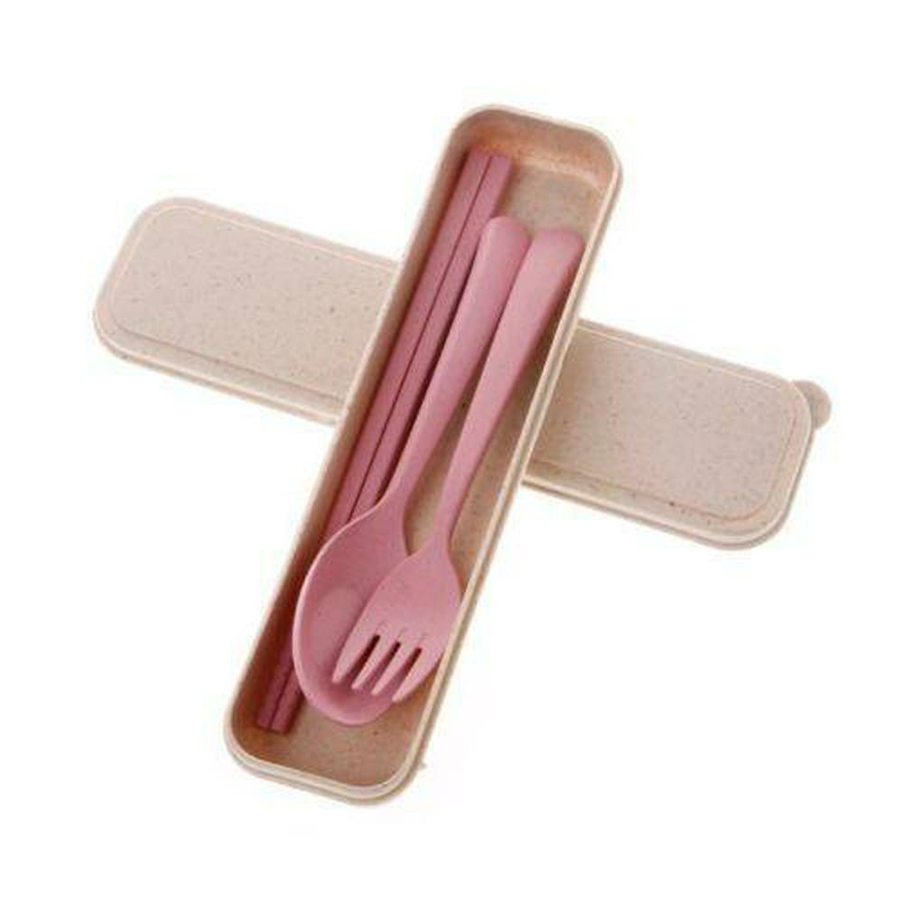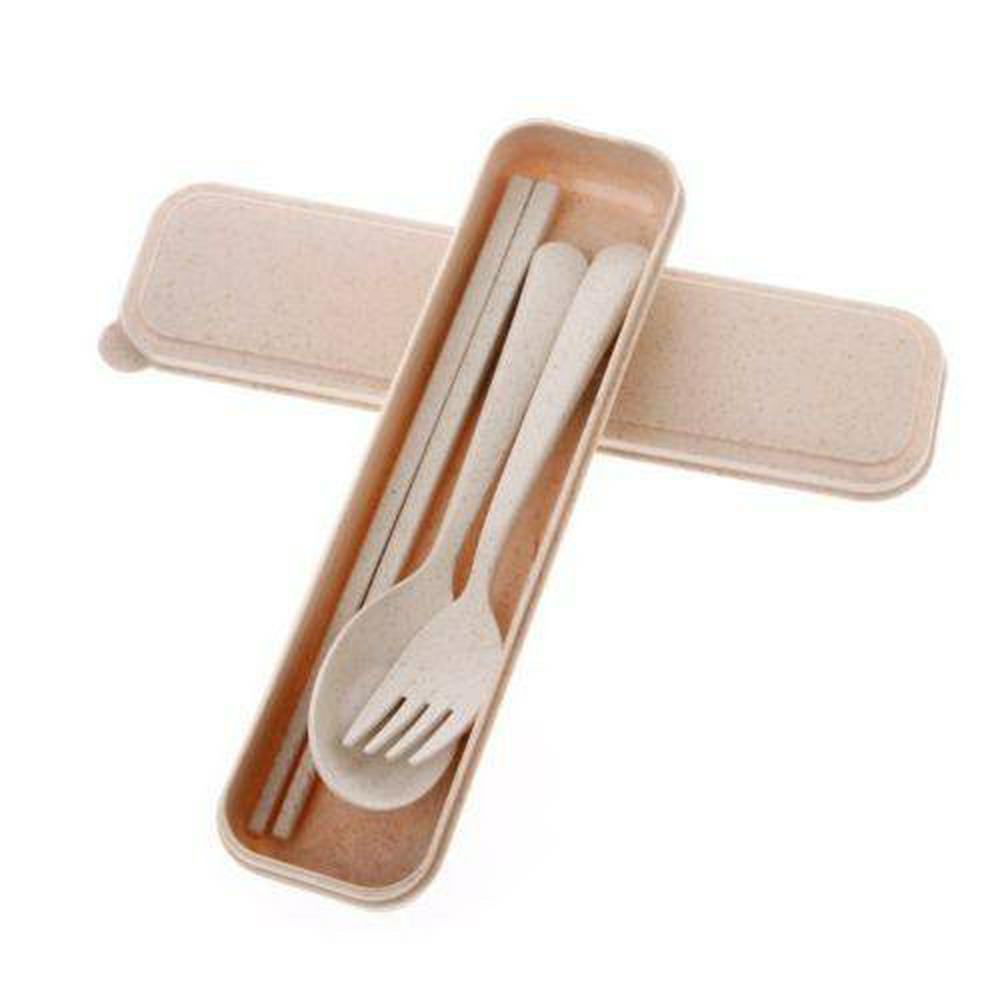 3pcs/set Portable Spoon Fork Chopsticks Wheat Straw Portable Reusable Travel Cutlery Dinnerware Set