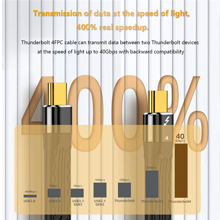 Max 40Gbps Data Transfer Rate: It can Reach Data Transfer Rate up to 40Gbps, and the transmission speed is twice as fast as Thunderbolt3