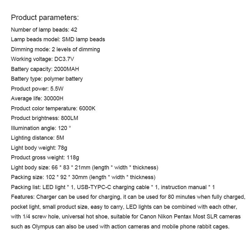 42 LED Camera Light Mini LED Fill Light Portable Mini Phone Photography Light Built-in Rechargeable Battery