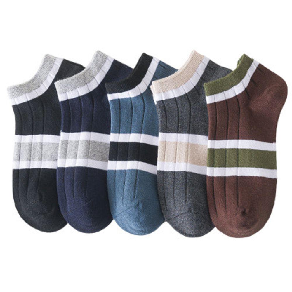 5 Pairs Men's Spring and Summer Thin Section Low-top Short Tube Boat Socks Deodorant Sweat Absorption Casual Boneless Double Needle Cotton Socks