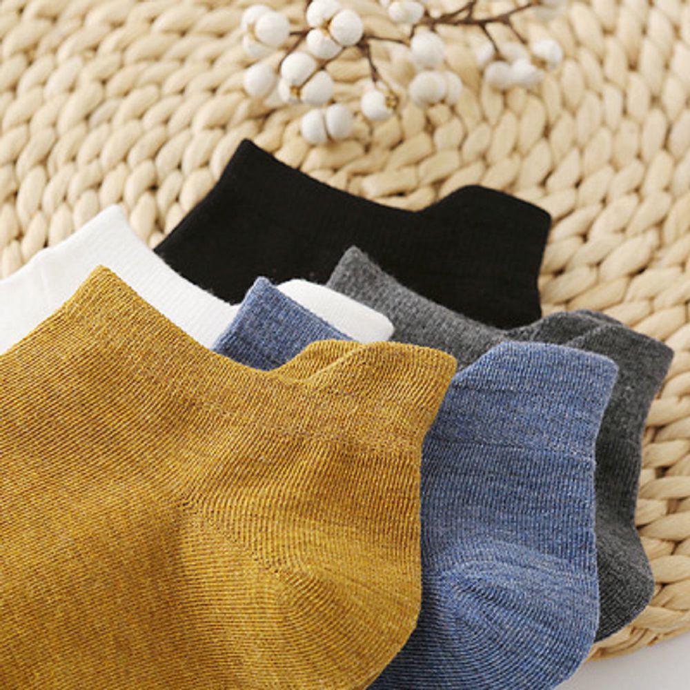 5 Pairs Summer Cotton Heel-protection Ears Solid Color Men's Breathable Sweat Absorbent Leisure Boat Socks