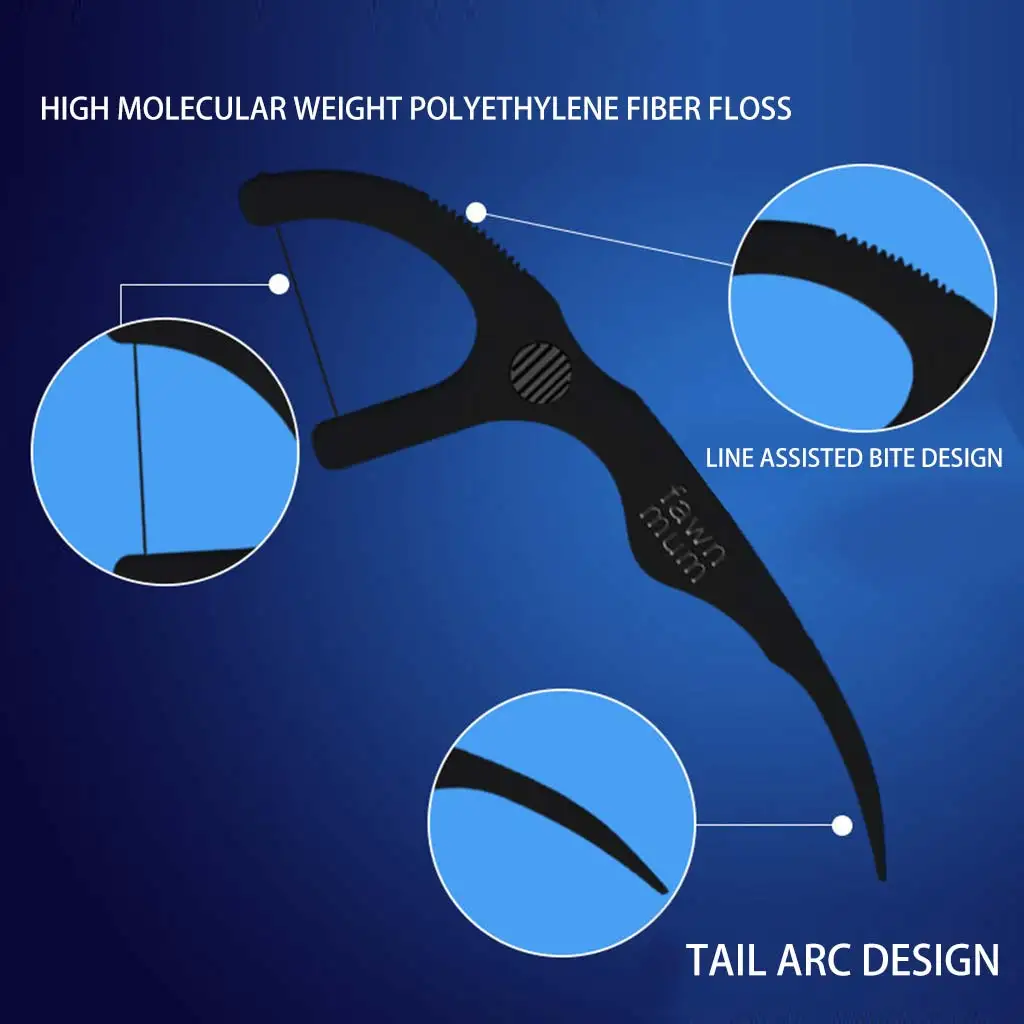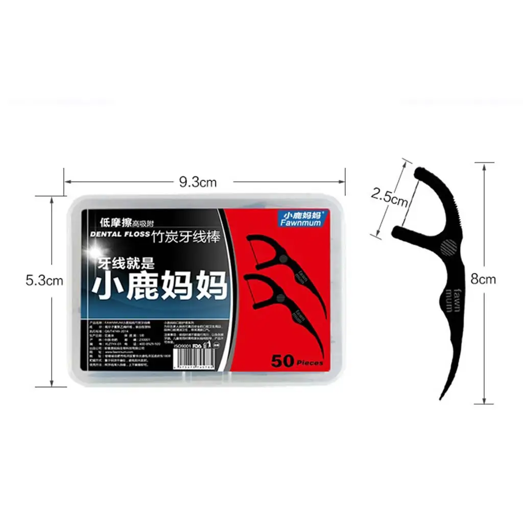 50 Sticks Deer's Mum High Absorption Bamboo Charcoal Floss Stick Deep Oral Cleaning Bow Shape Dental Floss