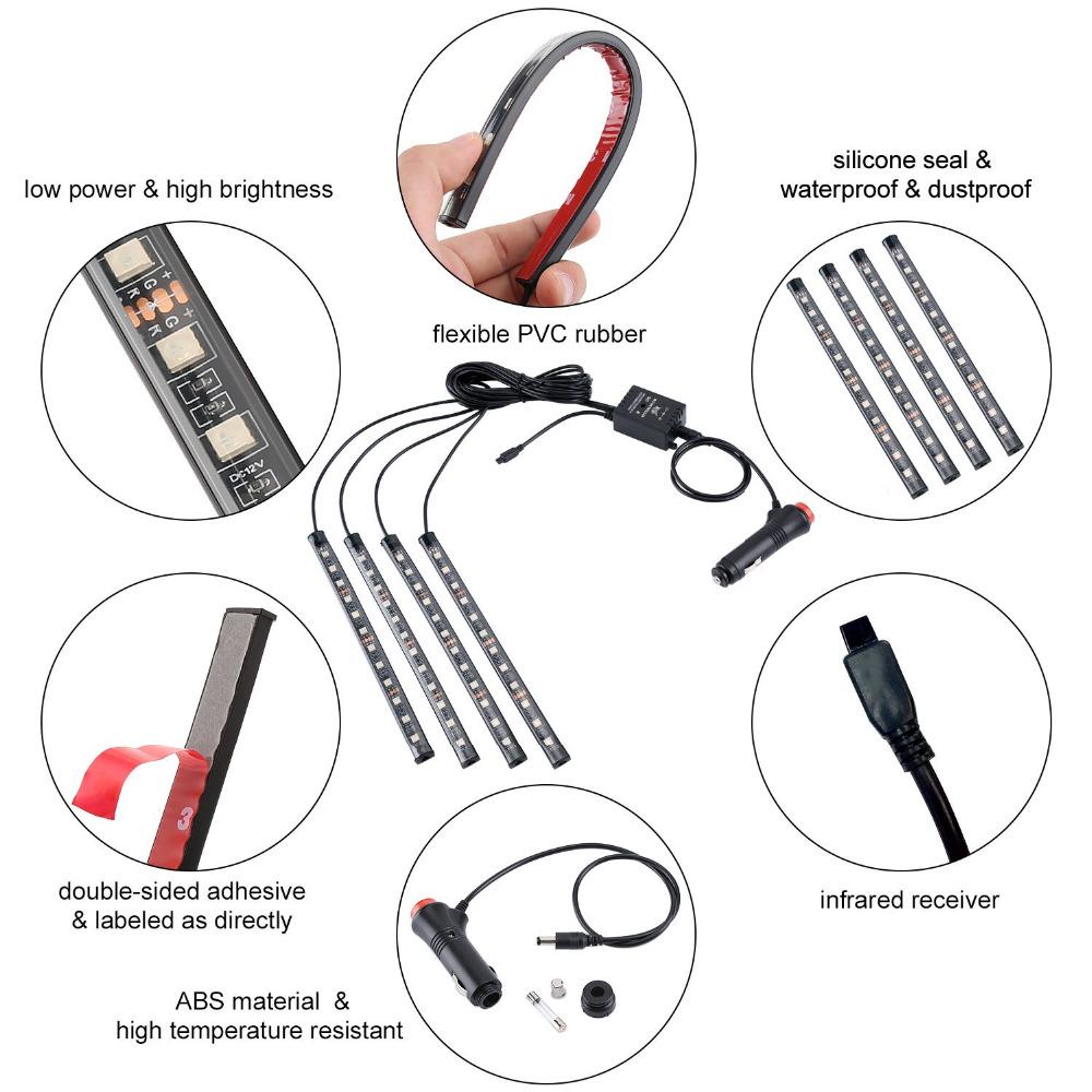 5050 Interior Car RGB Bluetooth APP Remote Control Light Music Voice Control 12 LED Lighting LED Strip Tape