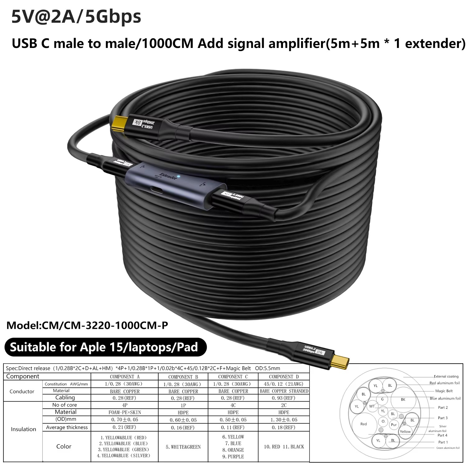 Durable Construction: Featuring thickened tinned copper cores and multiple layers of shielding, this USB C to USB C cable reduces resistance and signal loss, effectively resists interference, and is built to withstand wear and tear, ensuring long-term durability