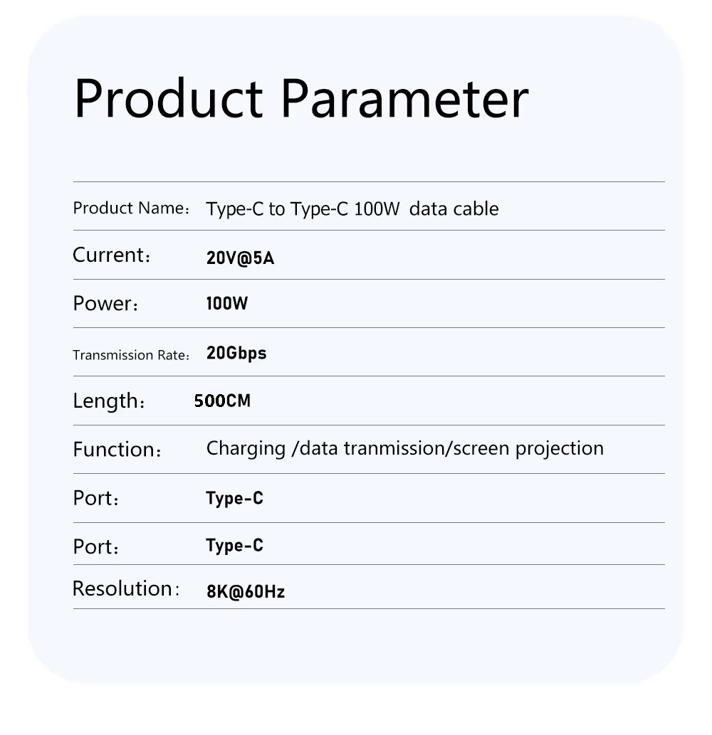 High Performance: The USB Type C to USB C cable supports 100W/8K (MAX) and 20Gbps full-function capabilities, making it ideal for compatible with OTG, screen projection, headphones, VR, hard drive enclosures, and docking stations, with 8K ultra-HD screen projection
