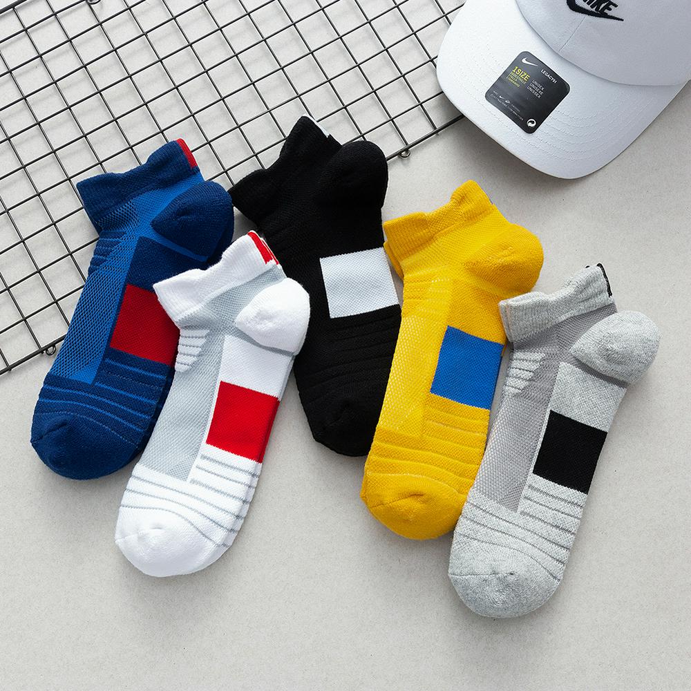 5pcs Men's Cotton Low-cut Boat Socks Thicken Towel Bottom Sports Sweat-absorbent Socks