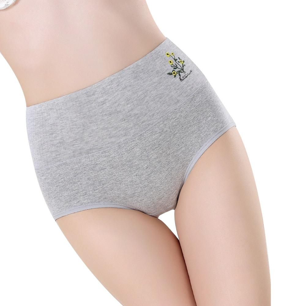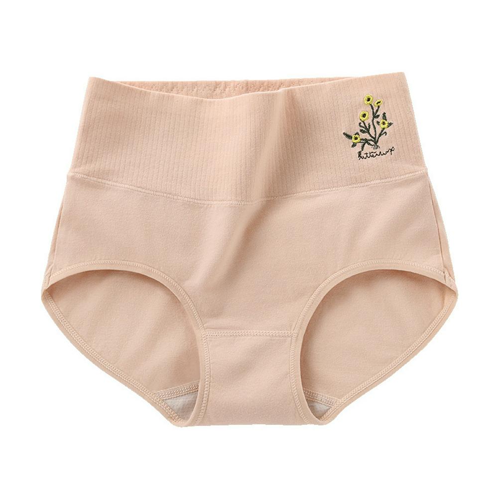 5Pcs Women's Pure Cotton Breathable Thread Embroidered Panties High Waist Abdomen and Hip-up Brifes