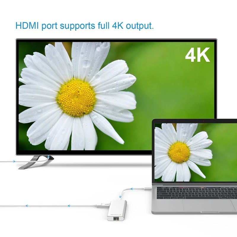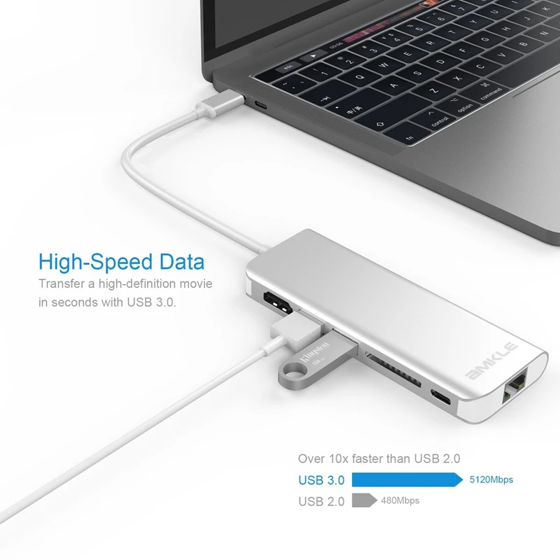 Just by using 1 amkle usb c 1 to 6 hub, you can equipped your computer with extra: