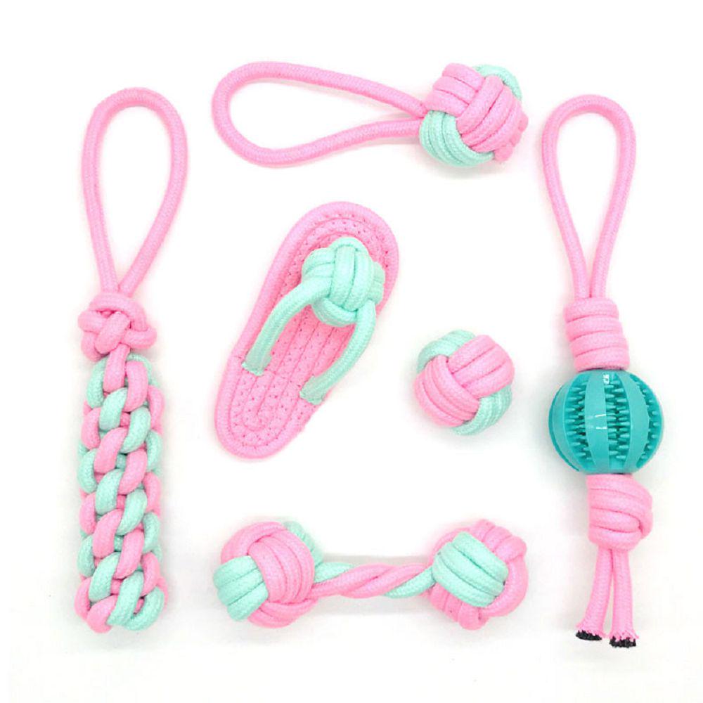 6-Piece Set D6-510 Pink Cotton Rope Toy Set Watermelon Ball Toys for Dog