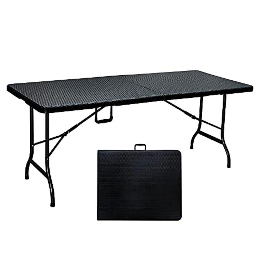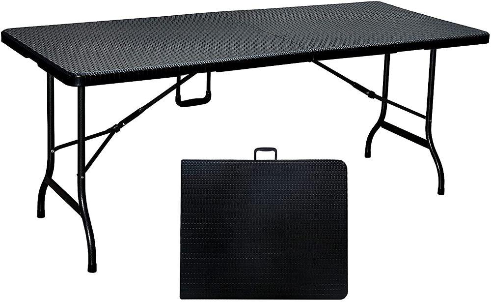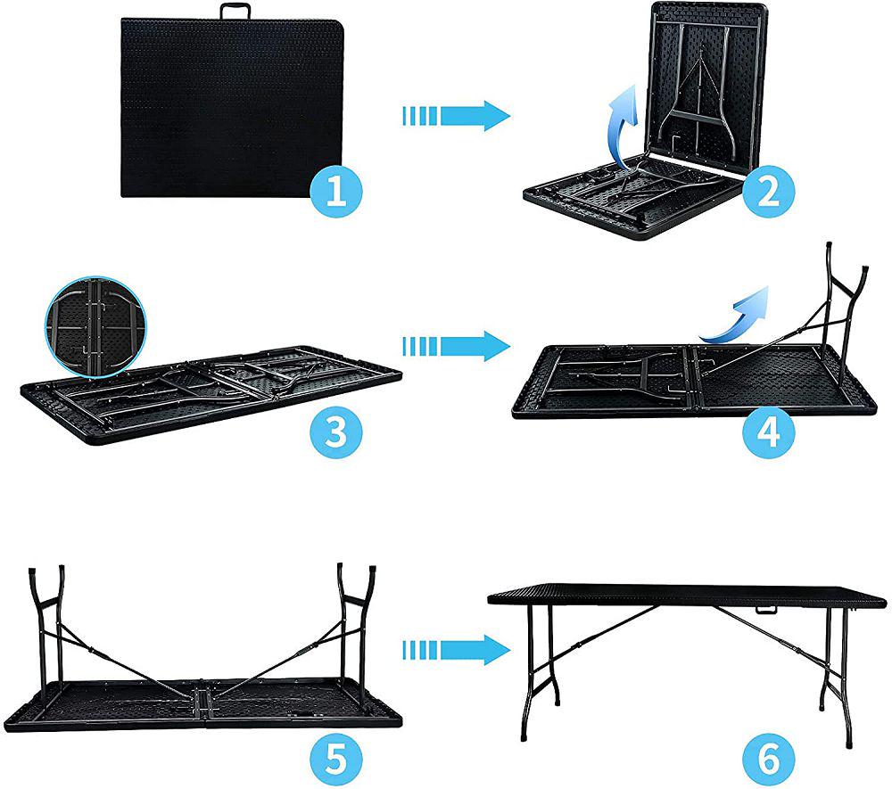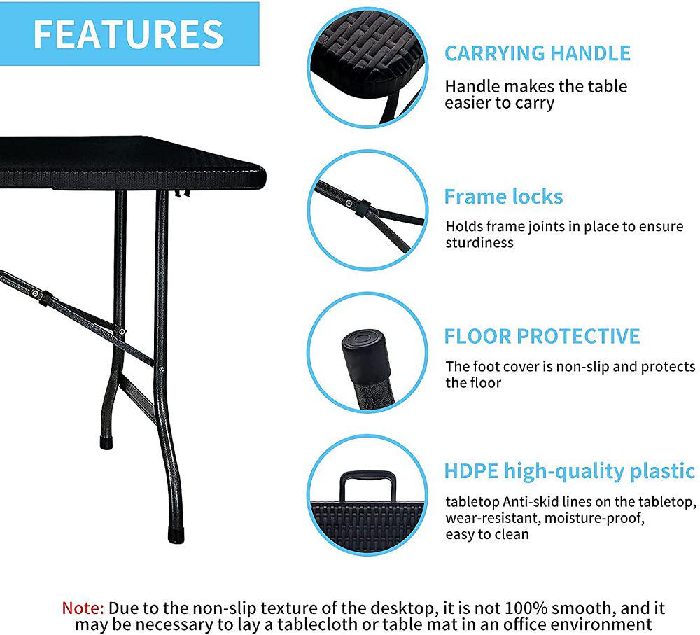 The table top of this folding table is made of high-density polyethylene (HDPE), the table top imitates solid wood grain, practical and beautiful, easy to clean.