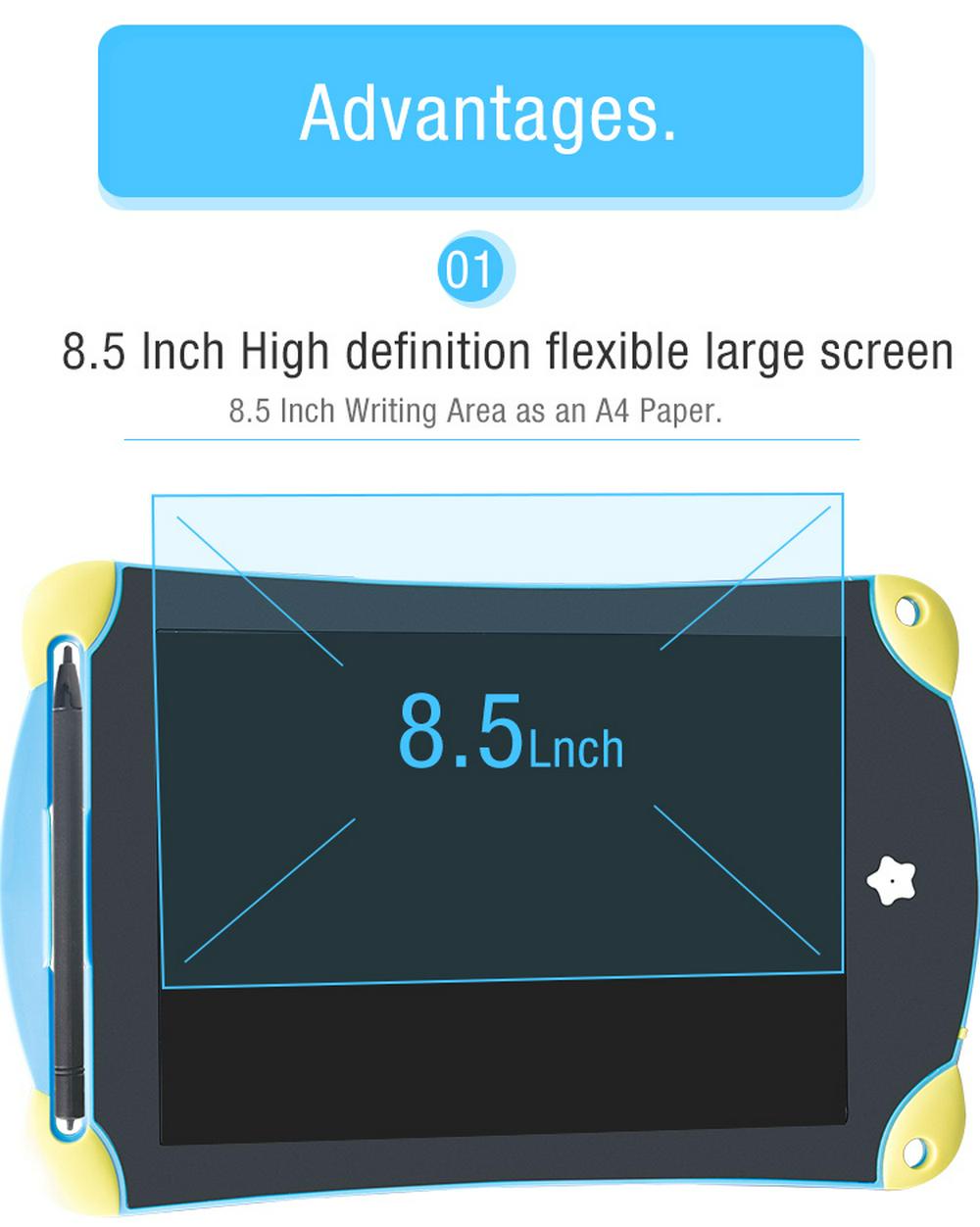 Writing and Drawing on the tablet is just like on the paper. It's suit for kids writing, drawing, office memo board, fridge message board and can be used as a comunication tool.