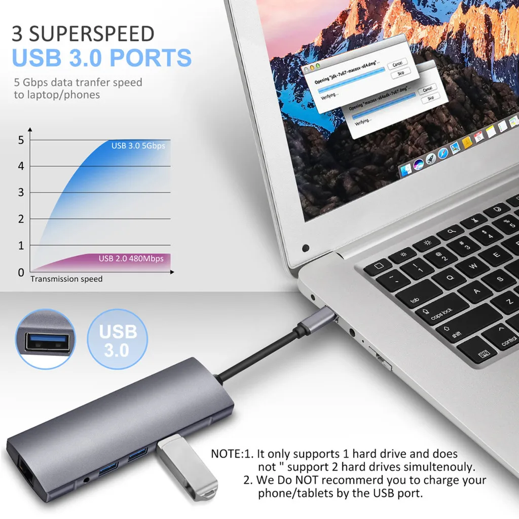 Product Name: Type-c to HDMI+RJ45+USB3.0*3+TF+SD+AUDIO+PD
