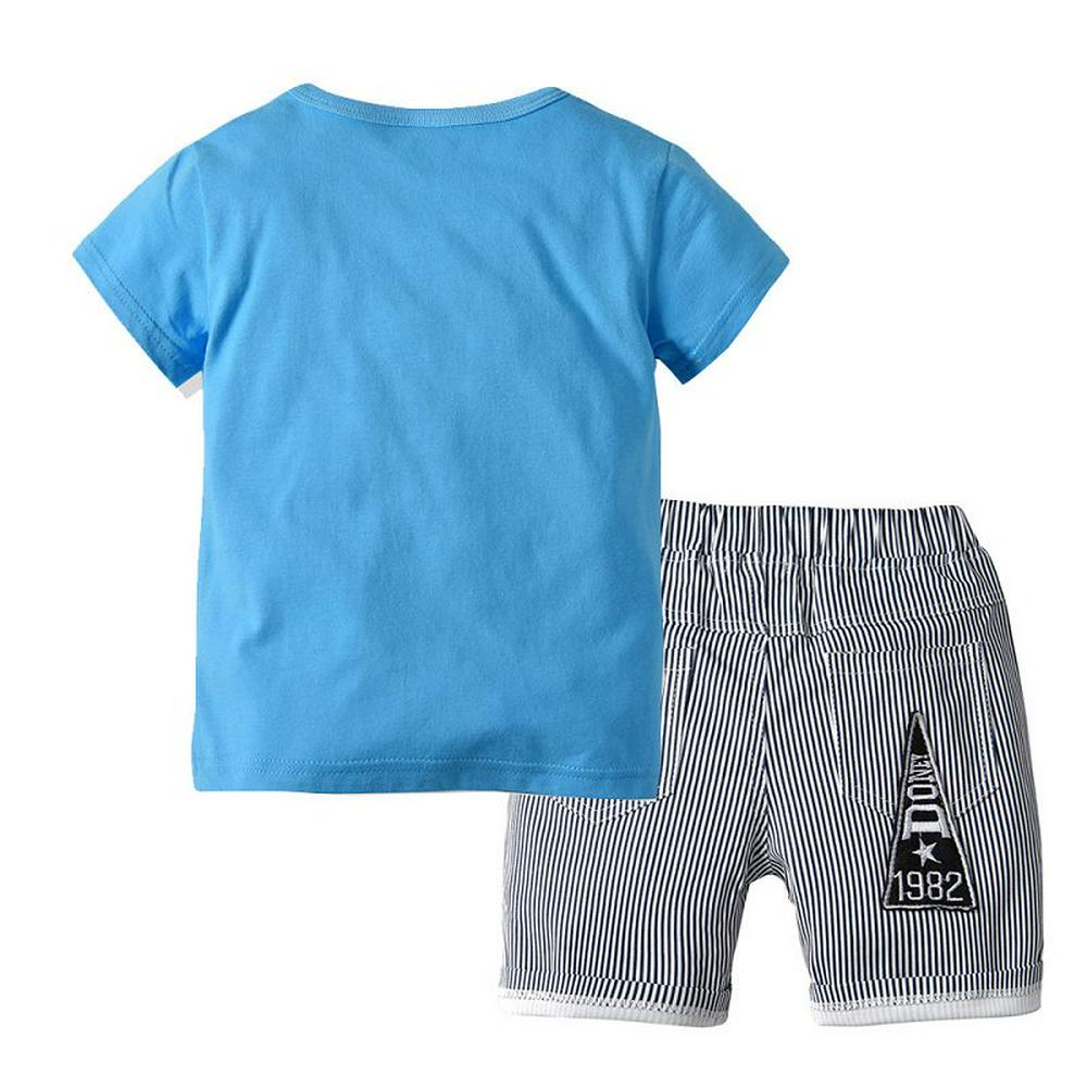 90-130cm Summer Children Boys Cartoon Sharp Print Pattern Cotton Short Sleeves O-Neck T-Shirt + Stripe Middle Pants Children Wear Two Pieces Set