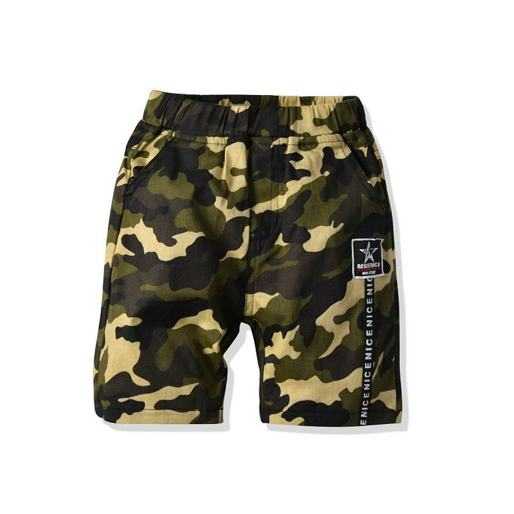 90-130cm Summer Children Boys Crocodile Pattern Cotton Short Sleeves O-Neck T-Shirt + Camouflage Woven Middle Pants Children Wear Two Pieces Set
