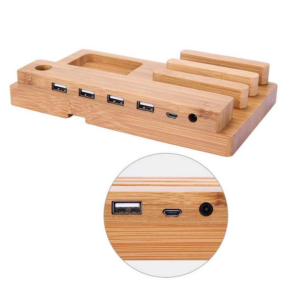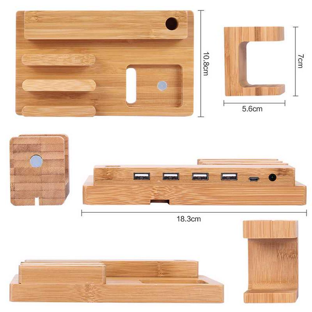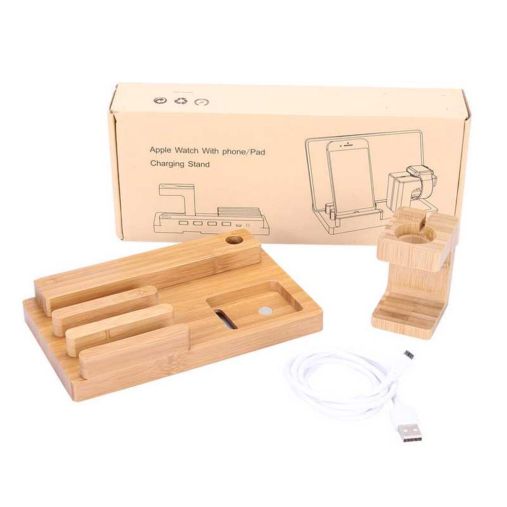 iWatch Mobile Phone Stand Holder Watch Bracket Tablet Charging Cable Storage Bamboo Change Dock