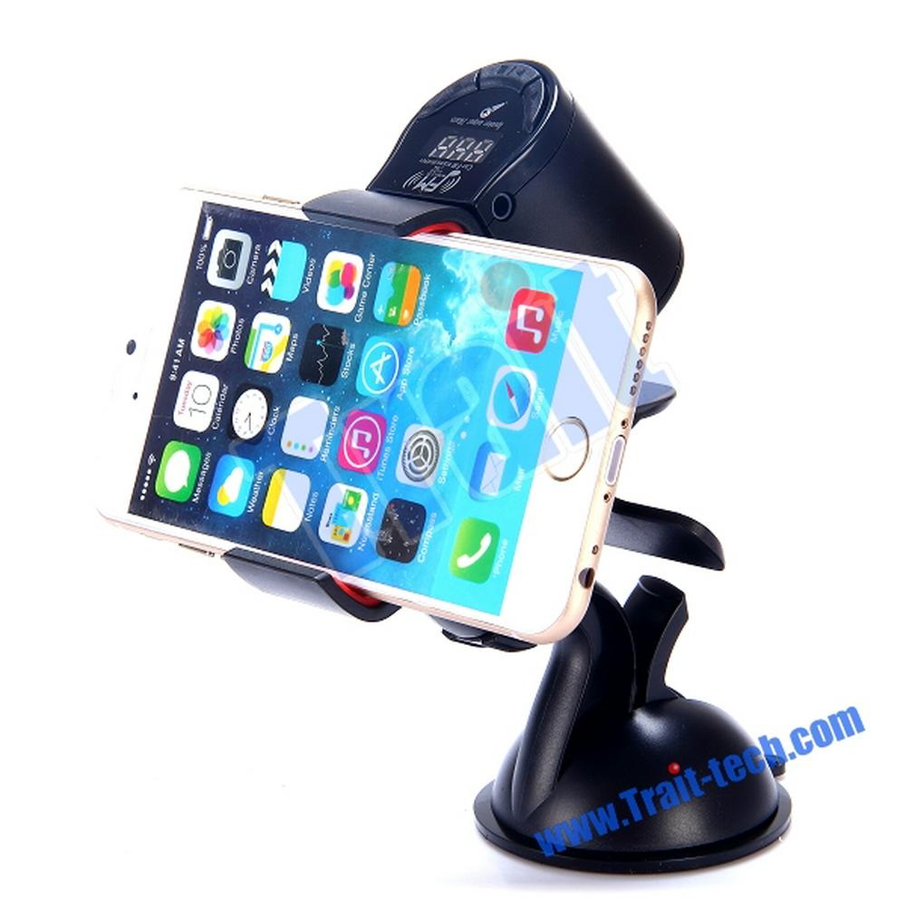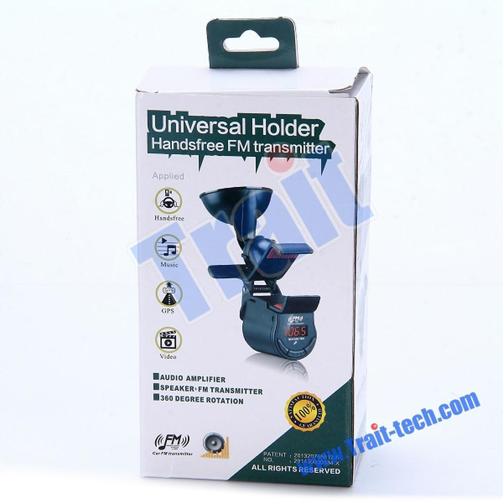 360 Degree Rotation Multifunction Universal Sucker Rotary Handsfree Phone Car Mount Holder + Audio Amplifier + FM Transmitter