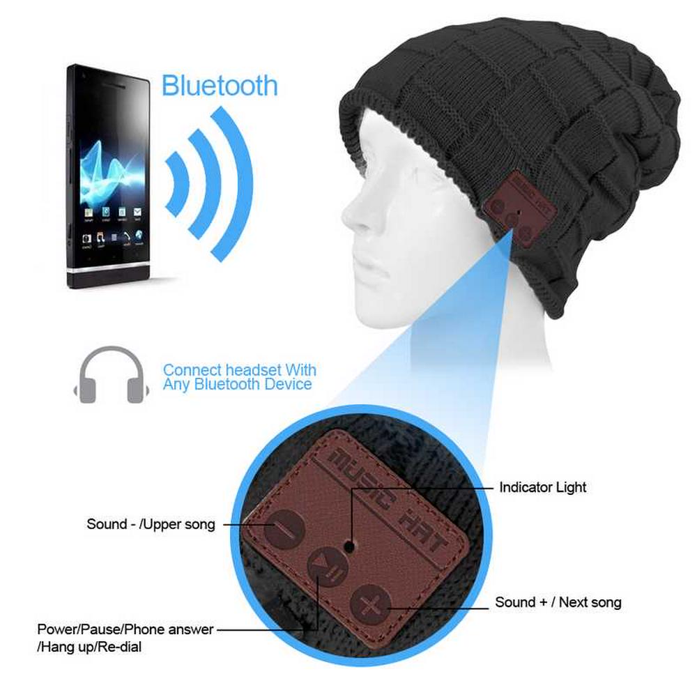 Wireless Bluetooth 4.2 with TF Card Slot Music Hat Speaker Headset Headphones Earphones Mic - Black