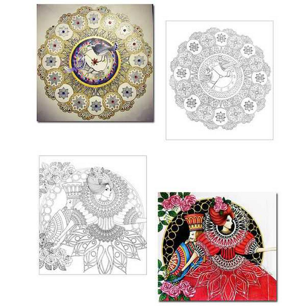4 * Hand Painted Color Graffiti Drawing Art Inky Books Ink Black White Coloring Book for Relieve Stress Kill Time + 12 * Color Pencil