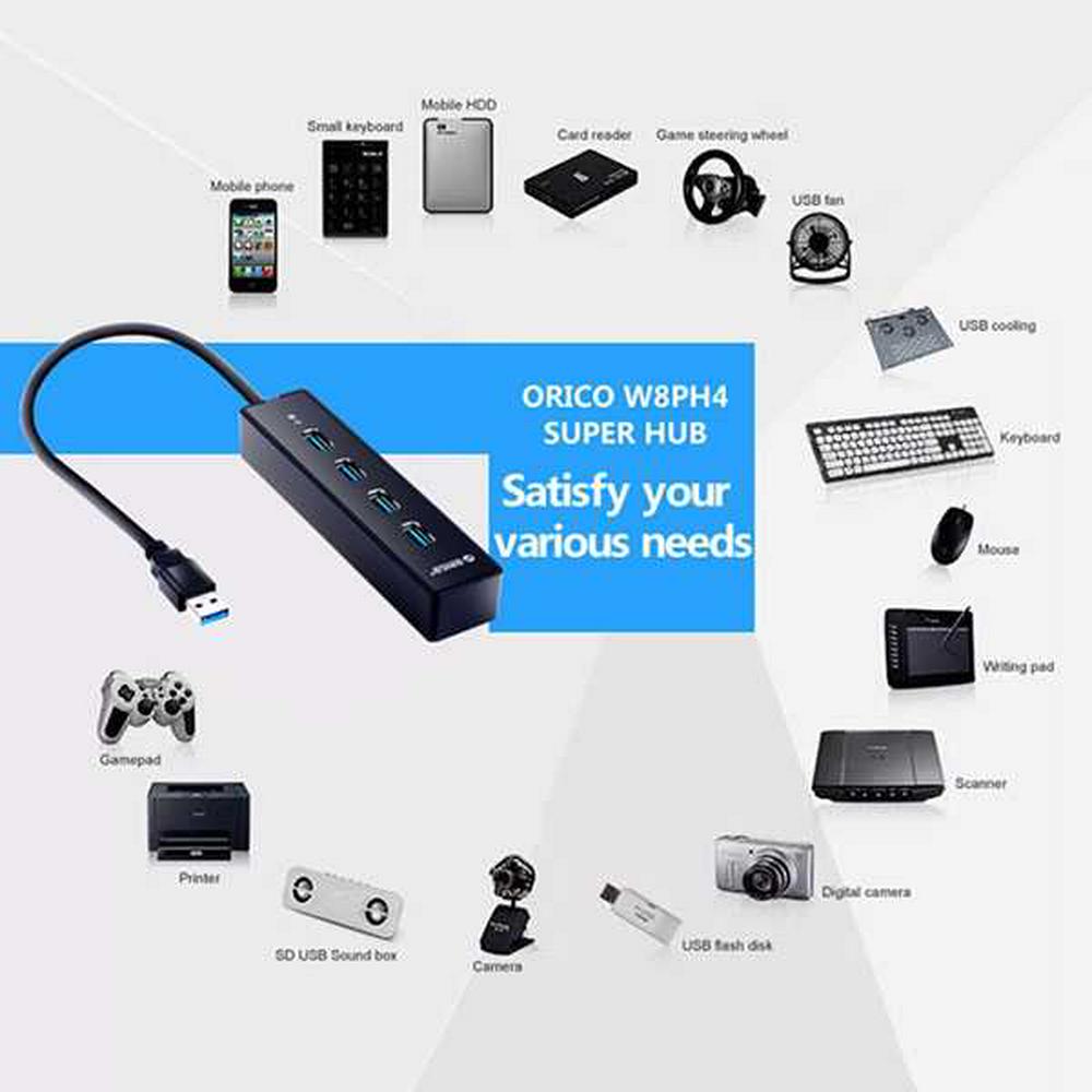 ORICO W8PH4 Portable With Vl812 Chipsets 4 Port USB 3.0 HUB For Notebook / Desktop / Laptop / Ultrabook