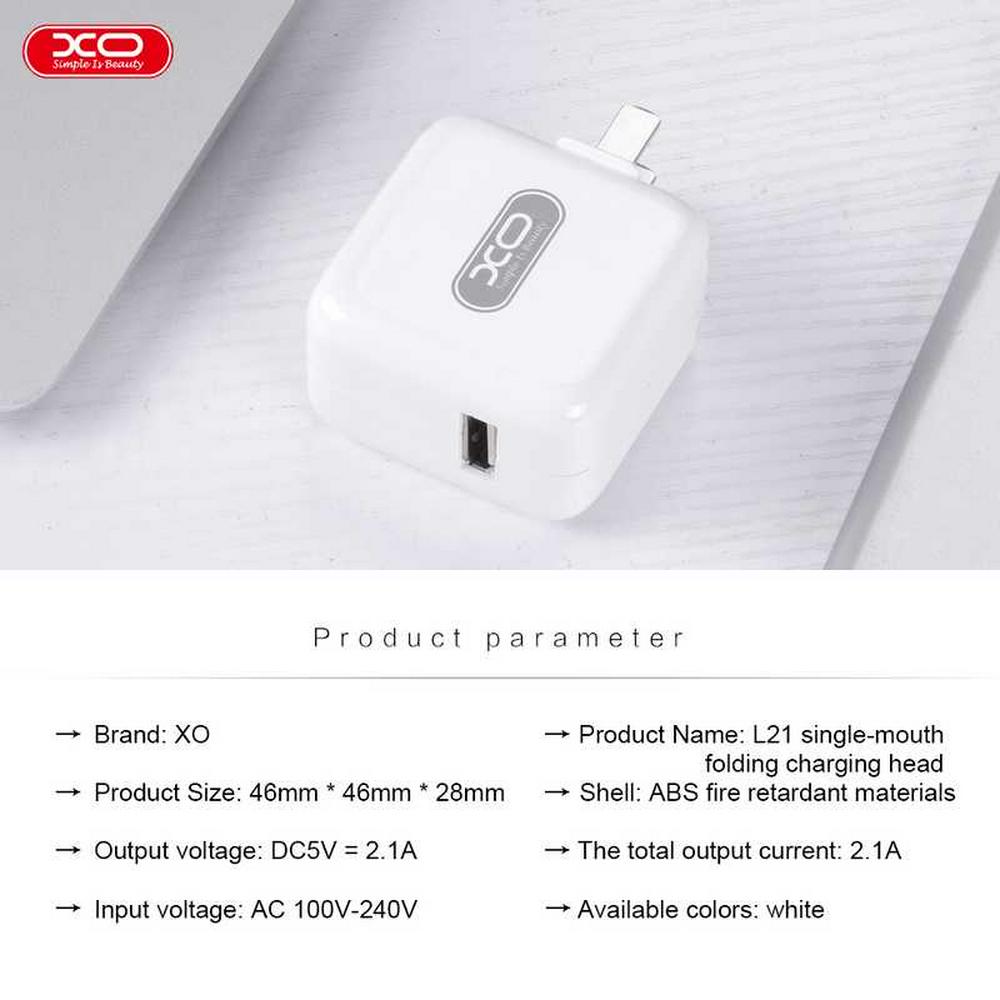 XO-L21 Single Mouth Foldable Plug Charging Head 2.1A Quick Charger