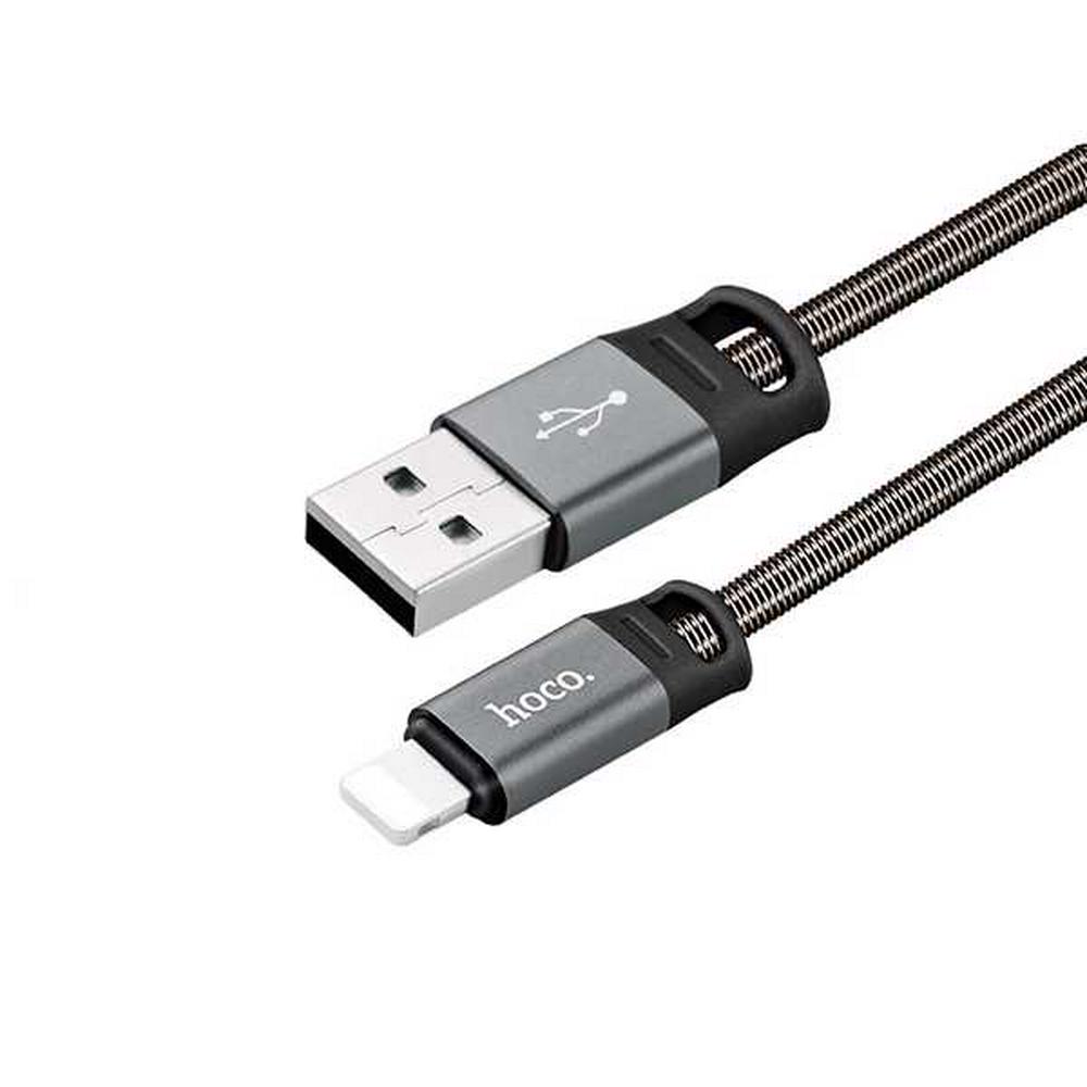 HOCO U27 Golden Shield 8 Pin 1.2m 2.4A USB Charging Data Cable with Stainless Steel Spring Outer Braid and Aluminum Alloy Connector for iPhone - Tarnish