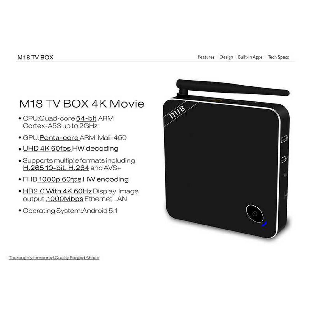M18 Android 5.1 Set Top Box TV Box Amlogic S905 Quad-core KODI XBMC UHD 4K LAN 2G/16G Mini PC WiFi H.265 Airplay Miracast DLNA