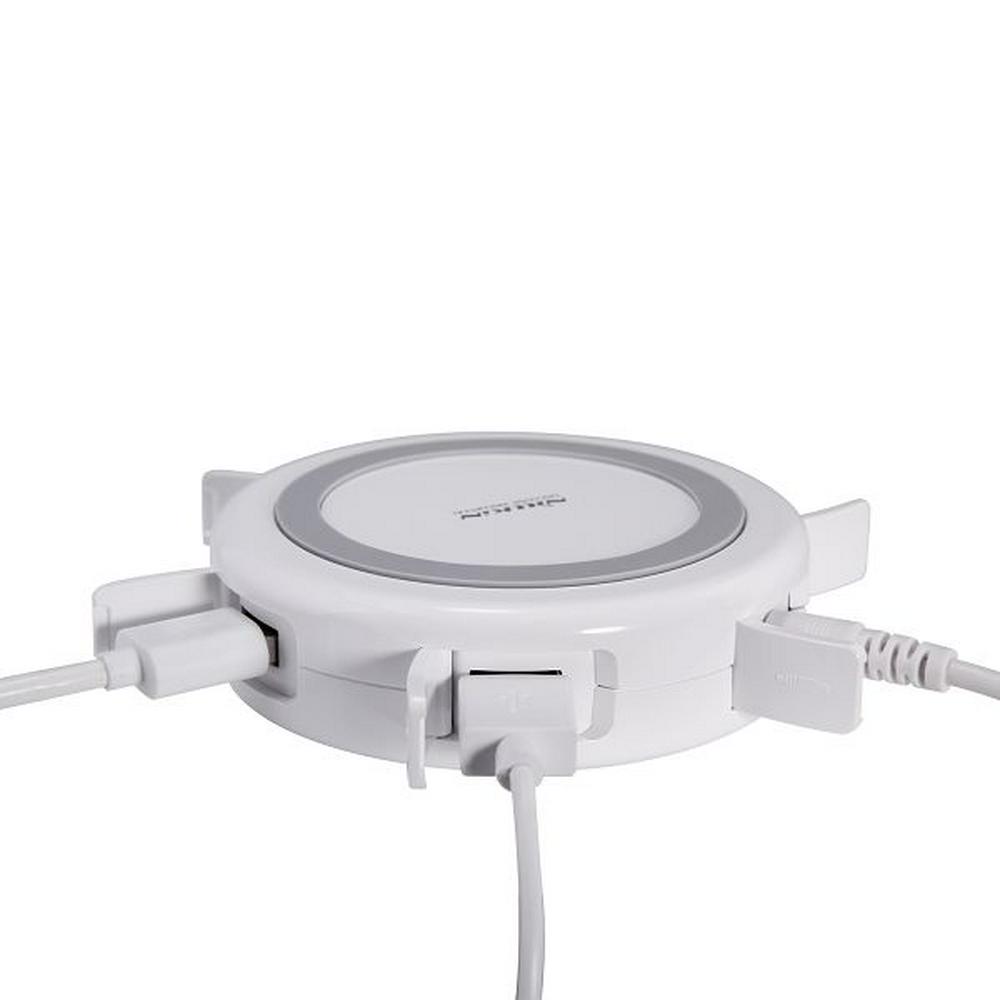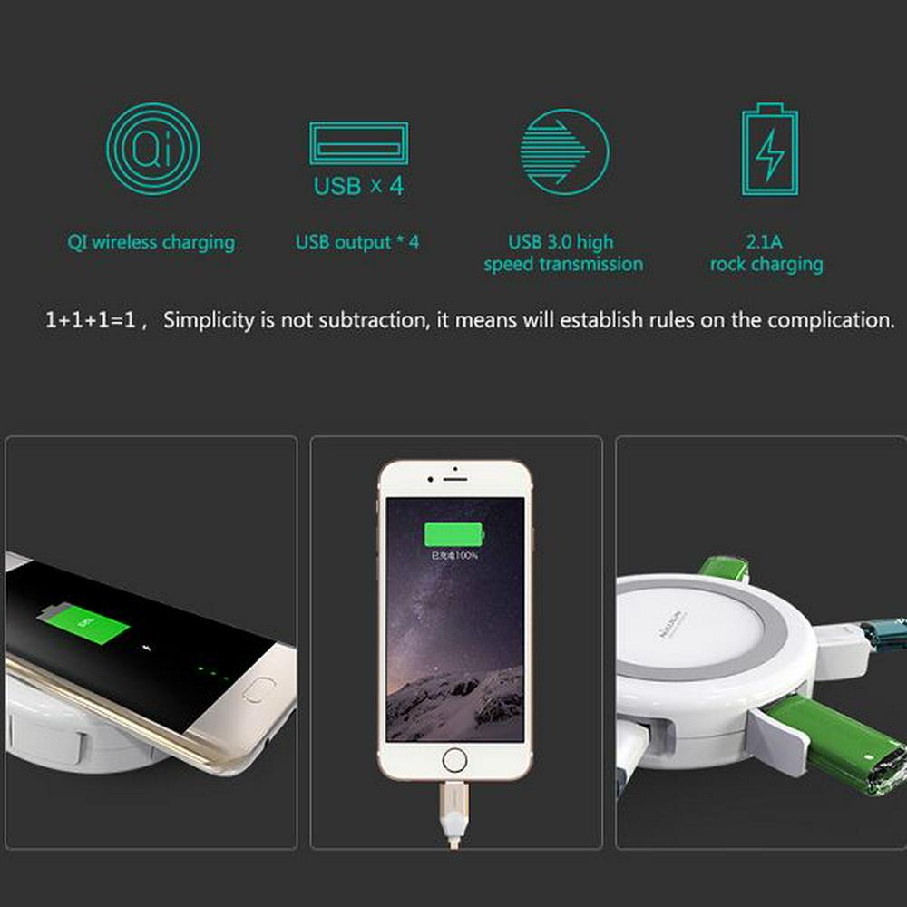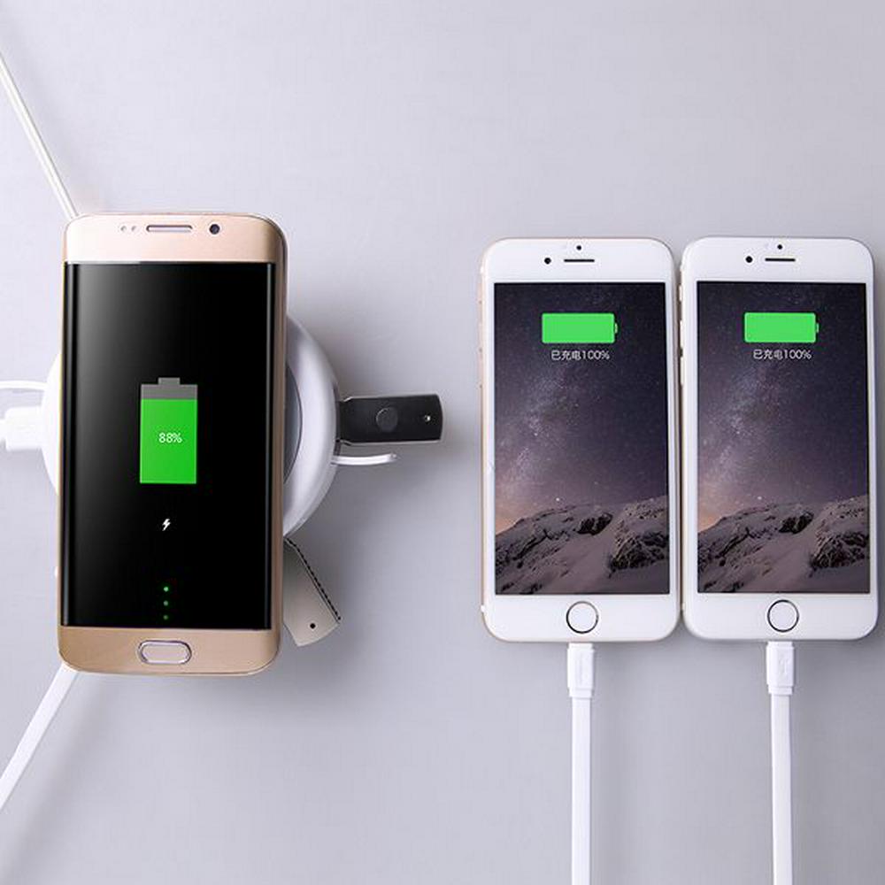 Hermit is a multifunctional wireless charger which is designed simply and easily,its design inspiration comes from the power flow of the sun and wings rotating windmill, the opened dust cover is like wings, refused to dust, caress the interface. There are multiple stardard USB interfaces hidden under the fruity and delicate appearance, 360 ° transmission experience ascension. After an external power source, it is the various chargers.Built-in QI standard wireless charging circle, convenient and quick.