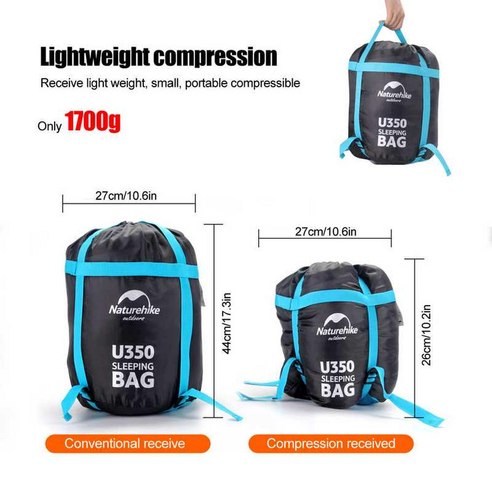Naturehike U350 Ultralight Down Feather Windproof Double Attachable Splicing Compression Outdoor Camping Sleeping Bag with Scarf