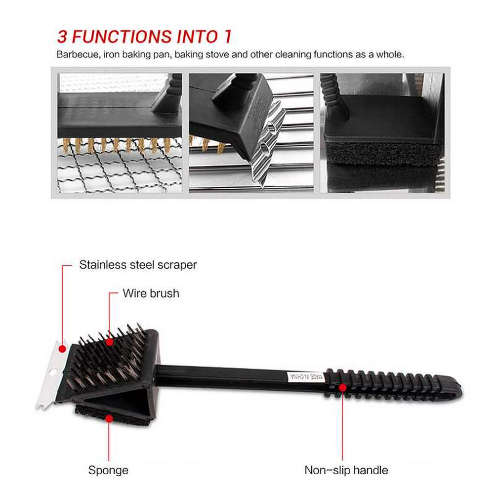 Outdoor Picnic BBQ with Long Handle Copper Wire Brush Barbecue Oven Brusher + Sponge Cleaning Brusher
