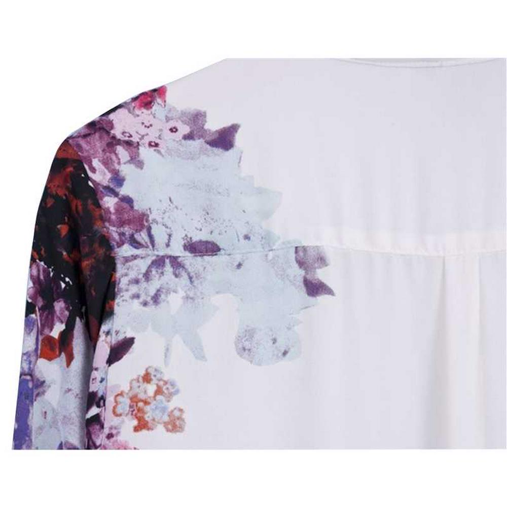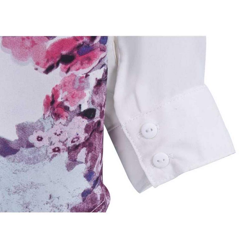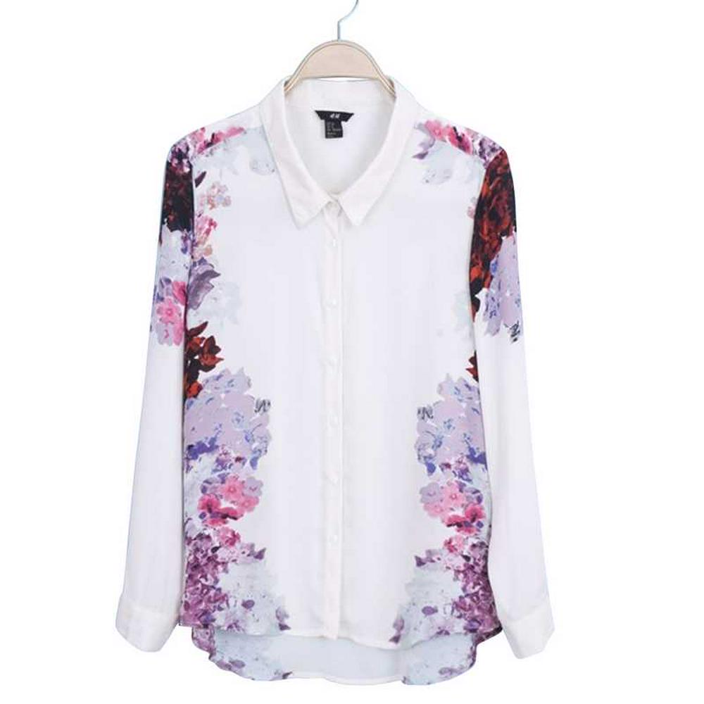 Spring and Autumn Elegant Flower Chiffon Long Sleeve Lapel Shirt with M L Size