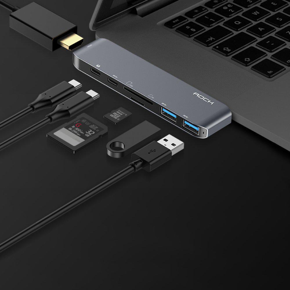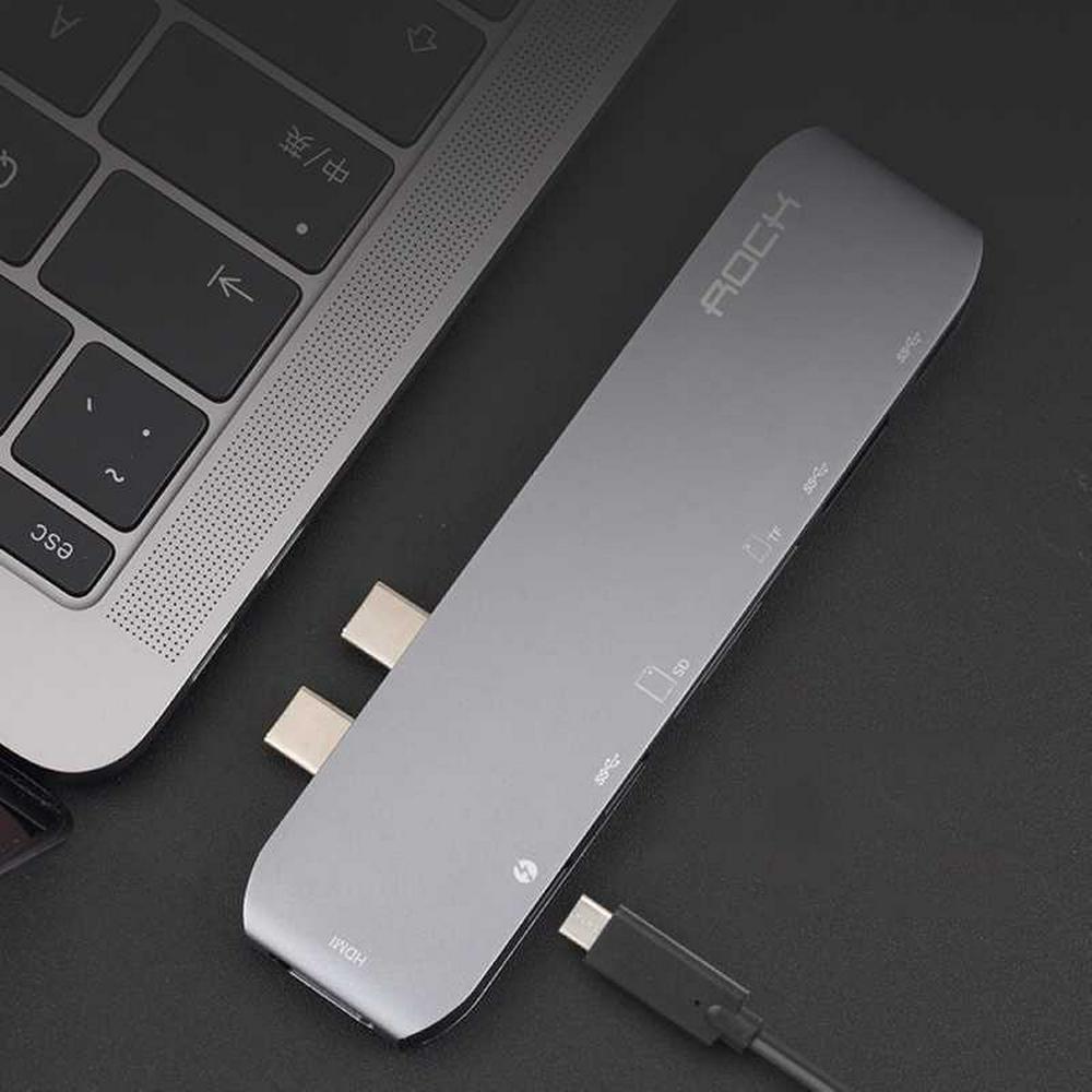 ROCK 1 to 6 Ports Converter 5K 4K Type-c HDMI USB3.1 SD TF Card Connector Adapter Notebook Dock Apple MacBook Pro