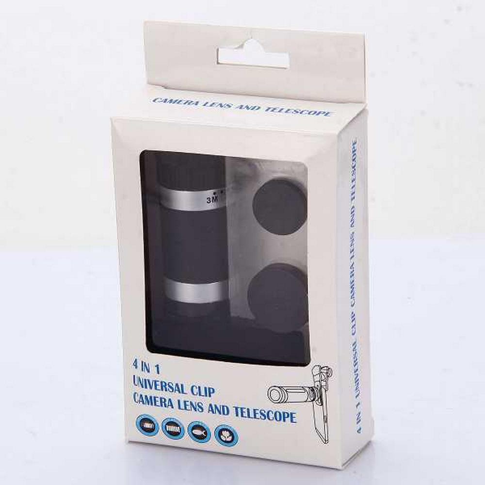 4 in 1 Universal Clip Camera Lens and Telescope with Fish Eye Lens+ Wide Angle+ Macro Lens