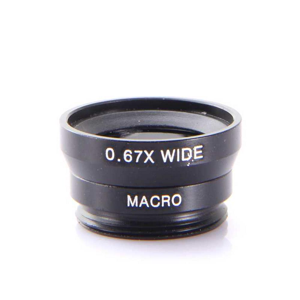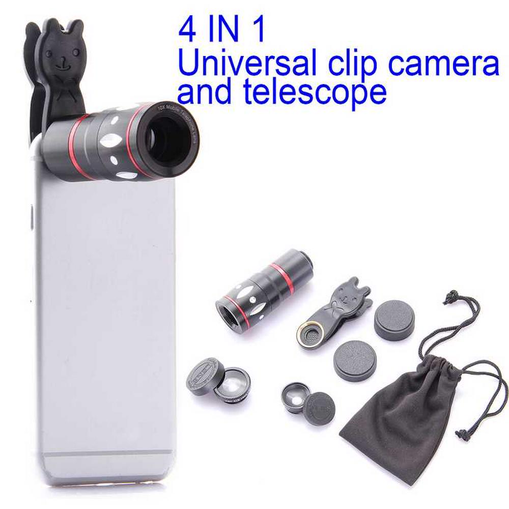 4 in 1 Universal Clip Camera Lens and Telescope black for Phone with Telescope + Macro + 0.67X Wide + Fish Eye Lens 180°