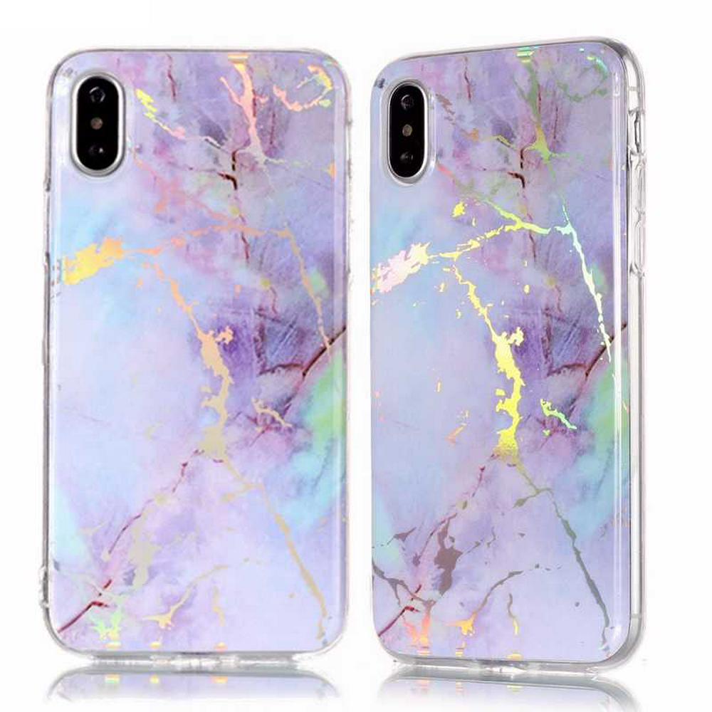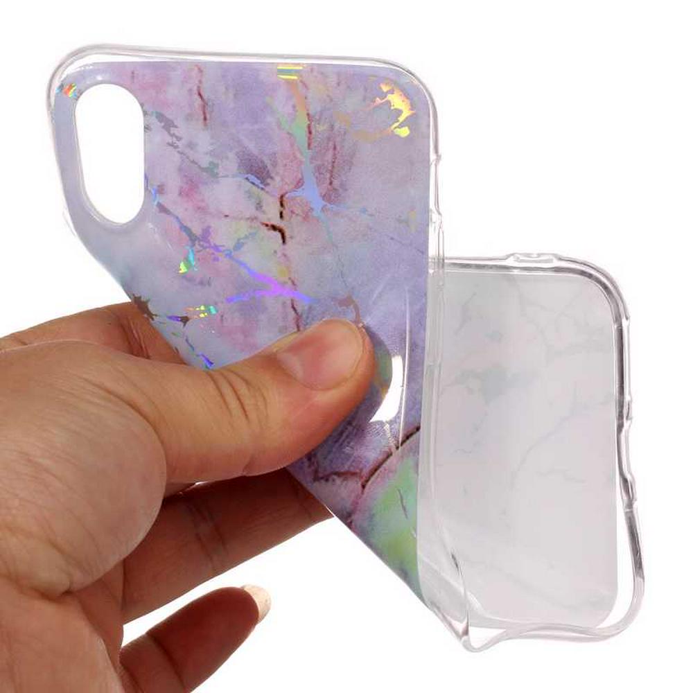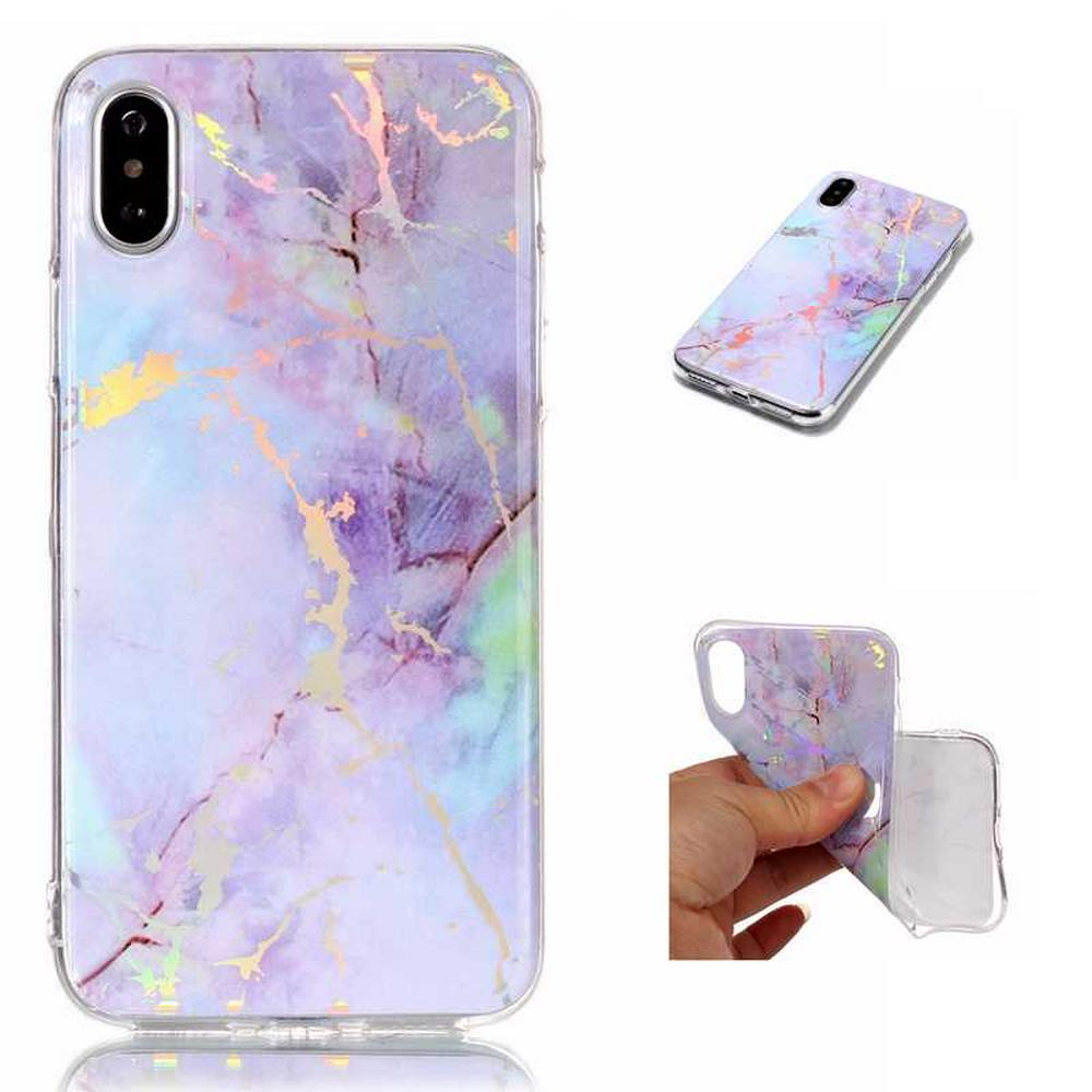 Rainbow Lightning Marble Pattern Soft TPU Back Cover Case for iPhone X - Purple