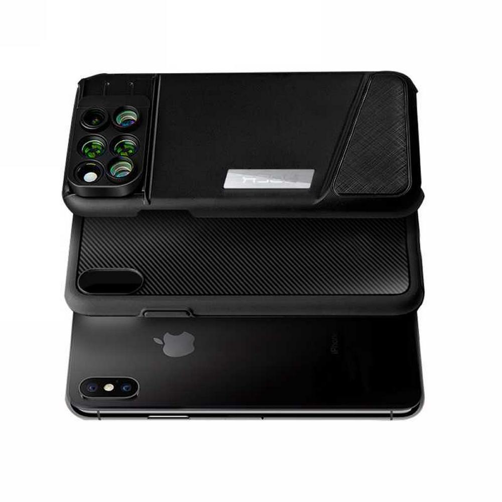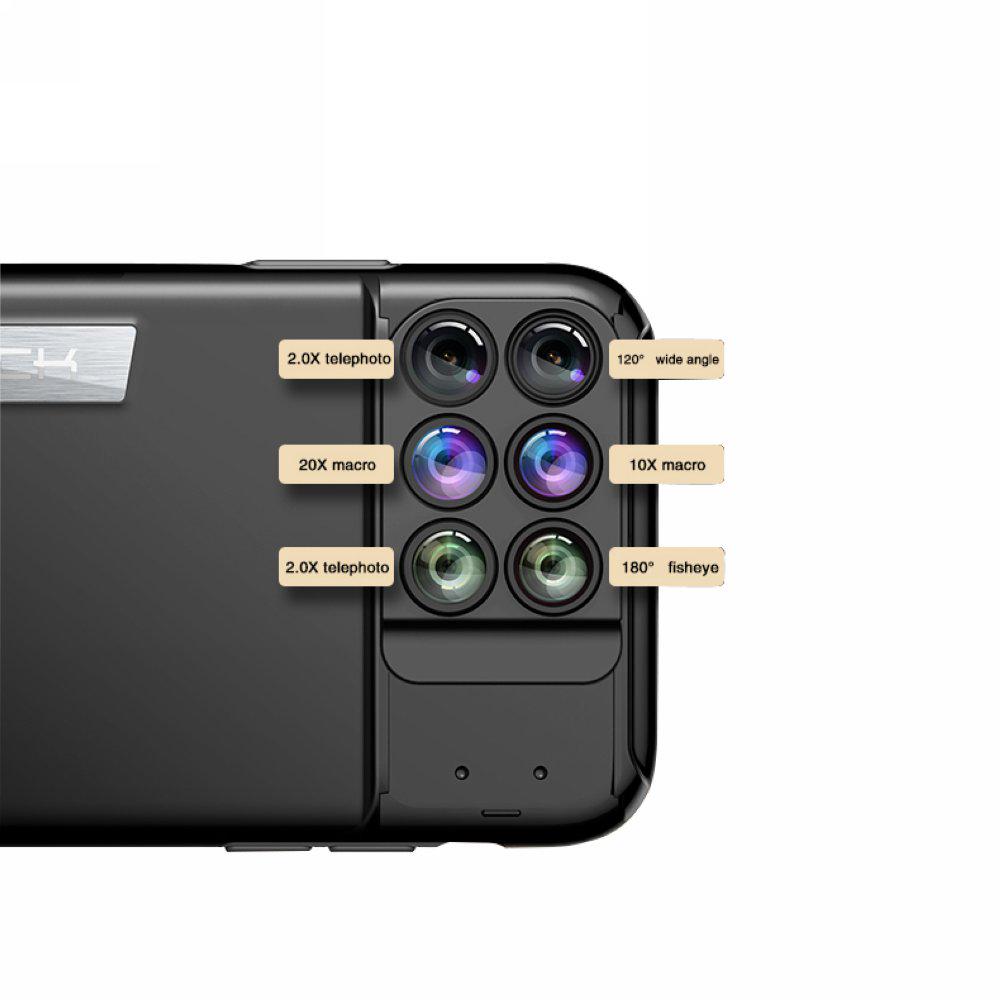 1 * ROCK 6 in 1 Camera Lens Professional Tele / Wide Angle / Macro / Fisheye + Hard PC Soft TPU Back Cover Case for iPhone