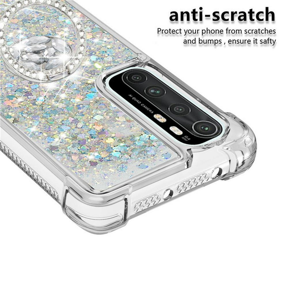 Airbag TPU Phone Case for Xiaomi Mi Note 10 Lite Ring Buckle Anti-fall Scratch Resistant Quicksand Protective Cover