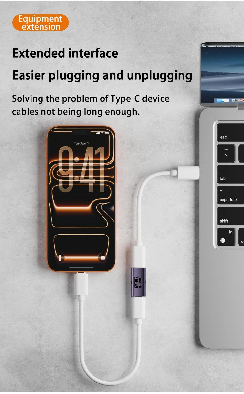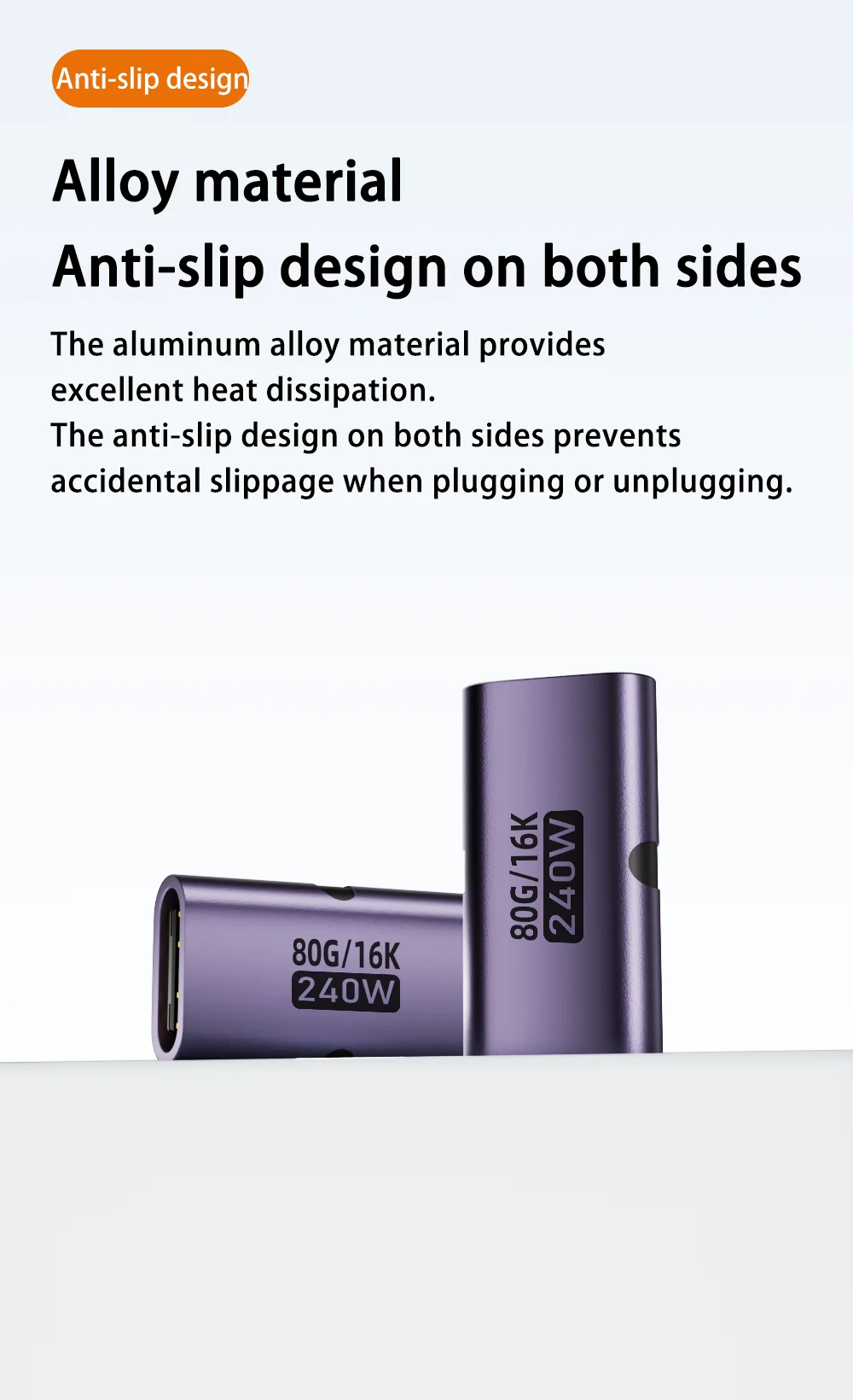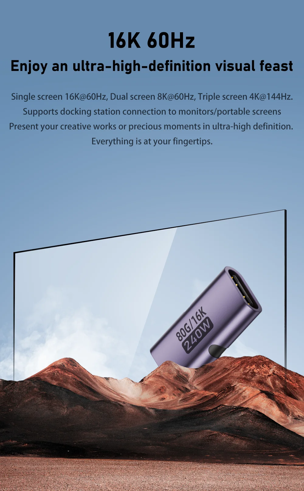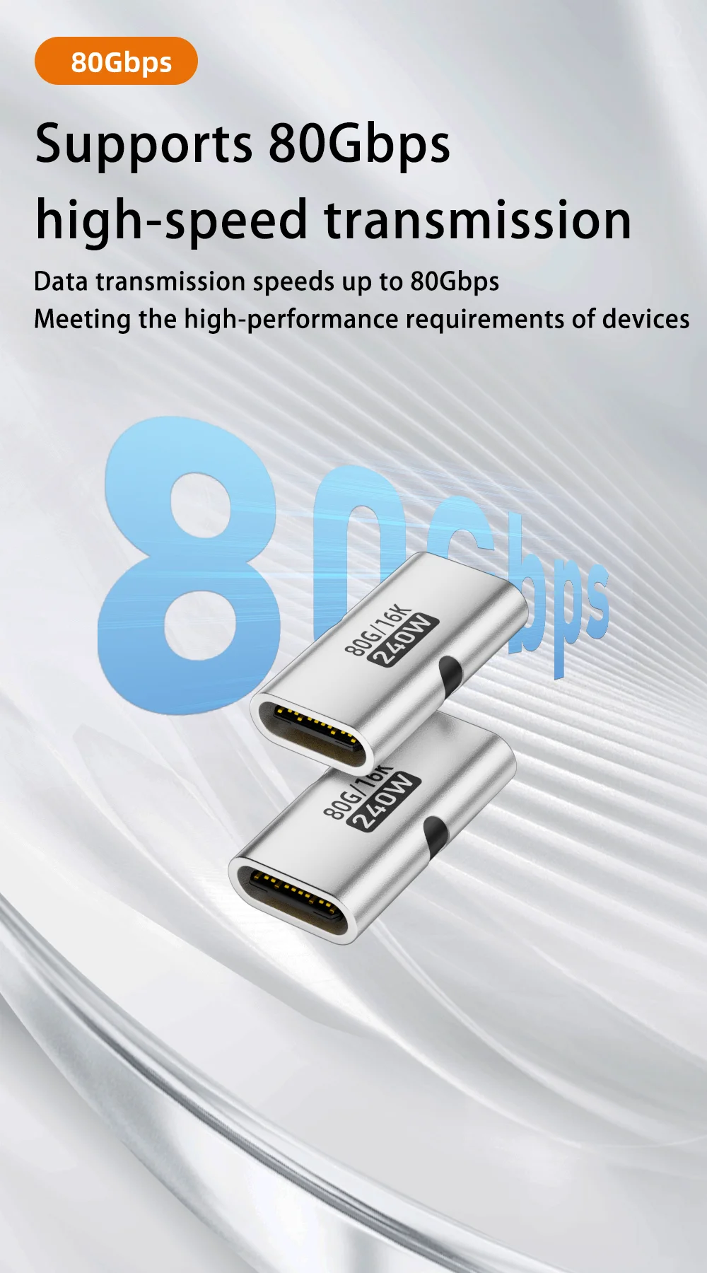 Aluminum Alloy Shell 16K Audio 80Gbps Quick Transfer Converter 240w Type C Female to Type-c Female Adapter for Phone Laptop TV