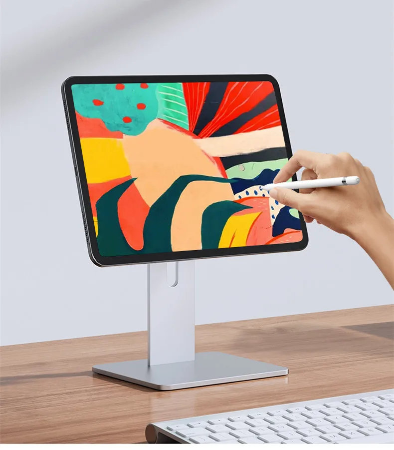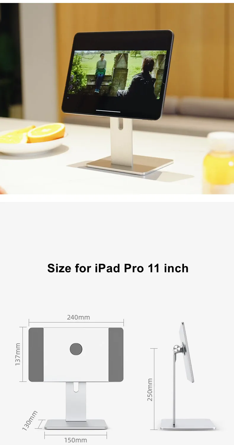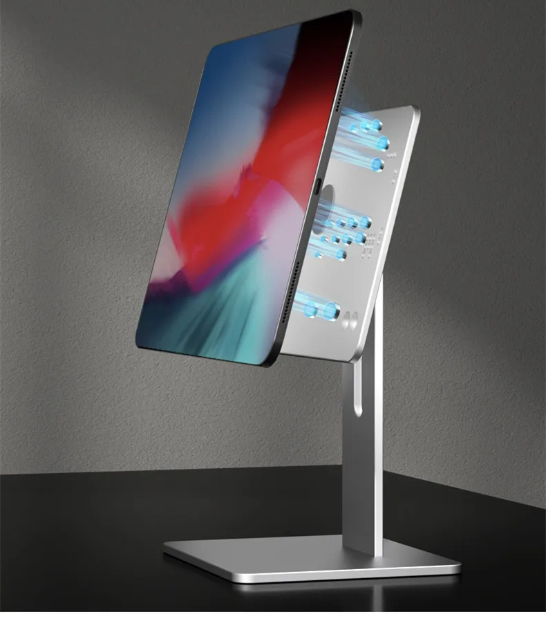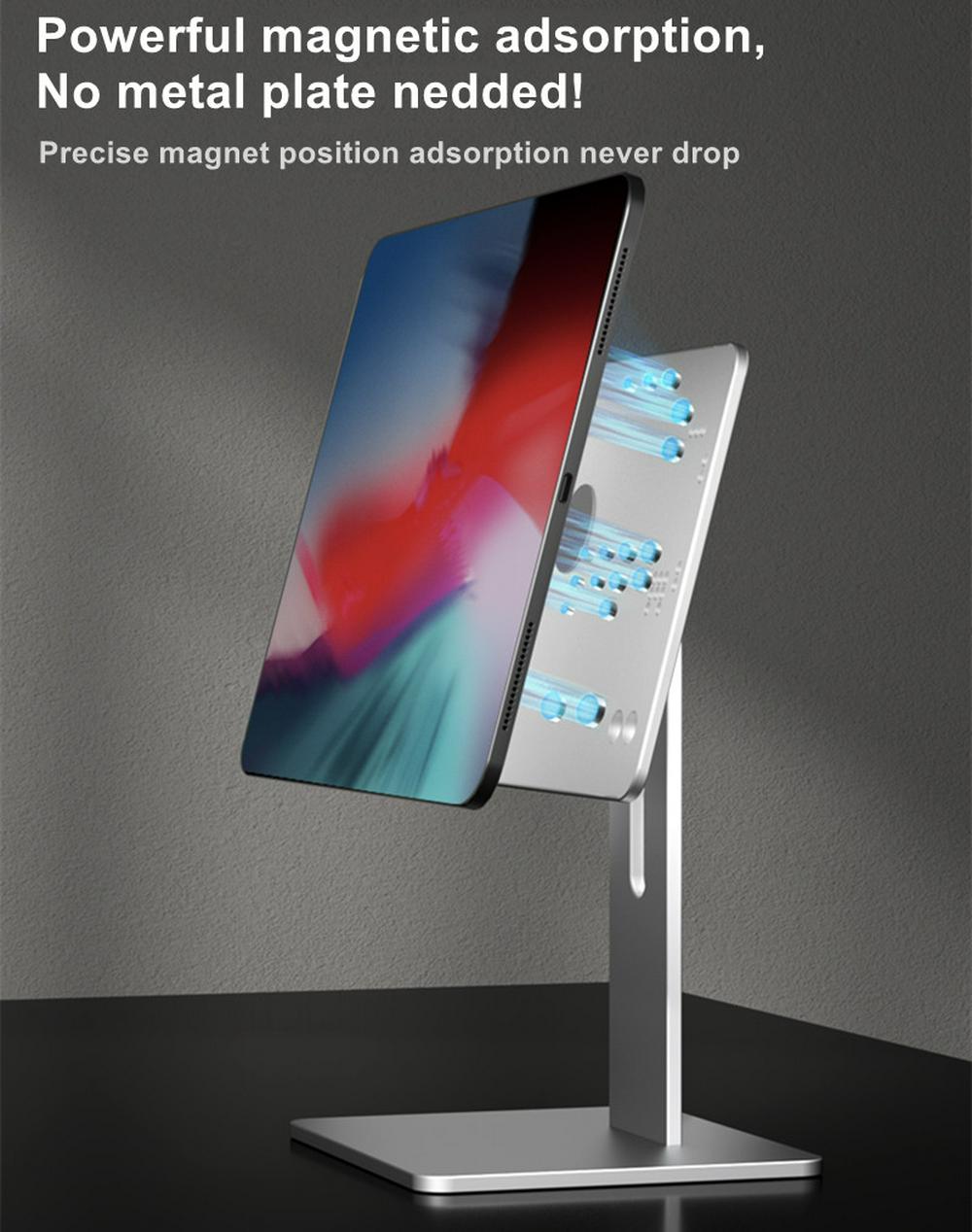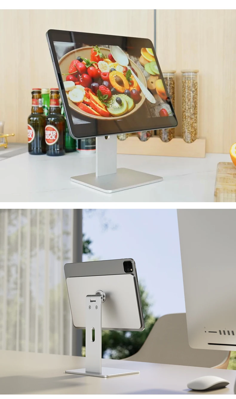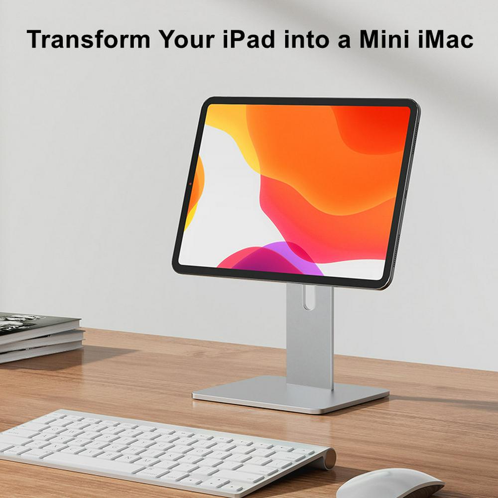 Upgrade Tablet PC Stand: Specially Design for iPad Pro 12.9", iPad 11", iPad Air. Refined aluminum with adjustable design, it holds tablet securely in place with magic magnet performance.